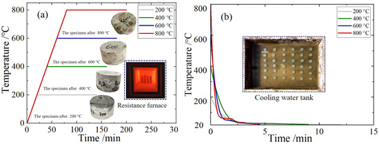 Figure 1. Specimen preparation and high-temperature cooling test: (a) heating curve; (b) cooling curve.