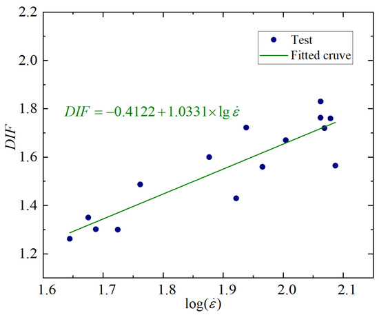 Research shows that the D I F of concrete material and the logarithm of the strain rate approximately satisfy a linear relationship [42], namely: