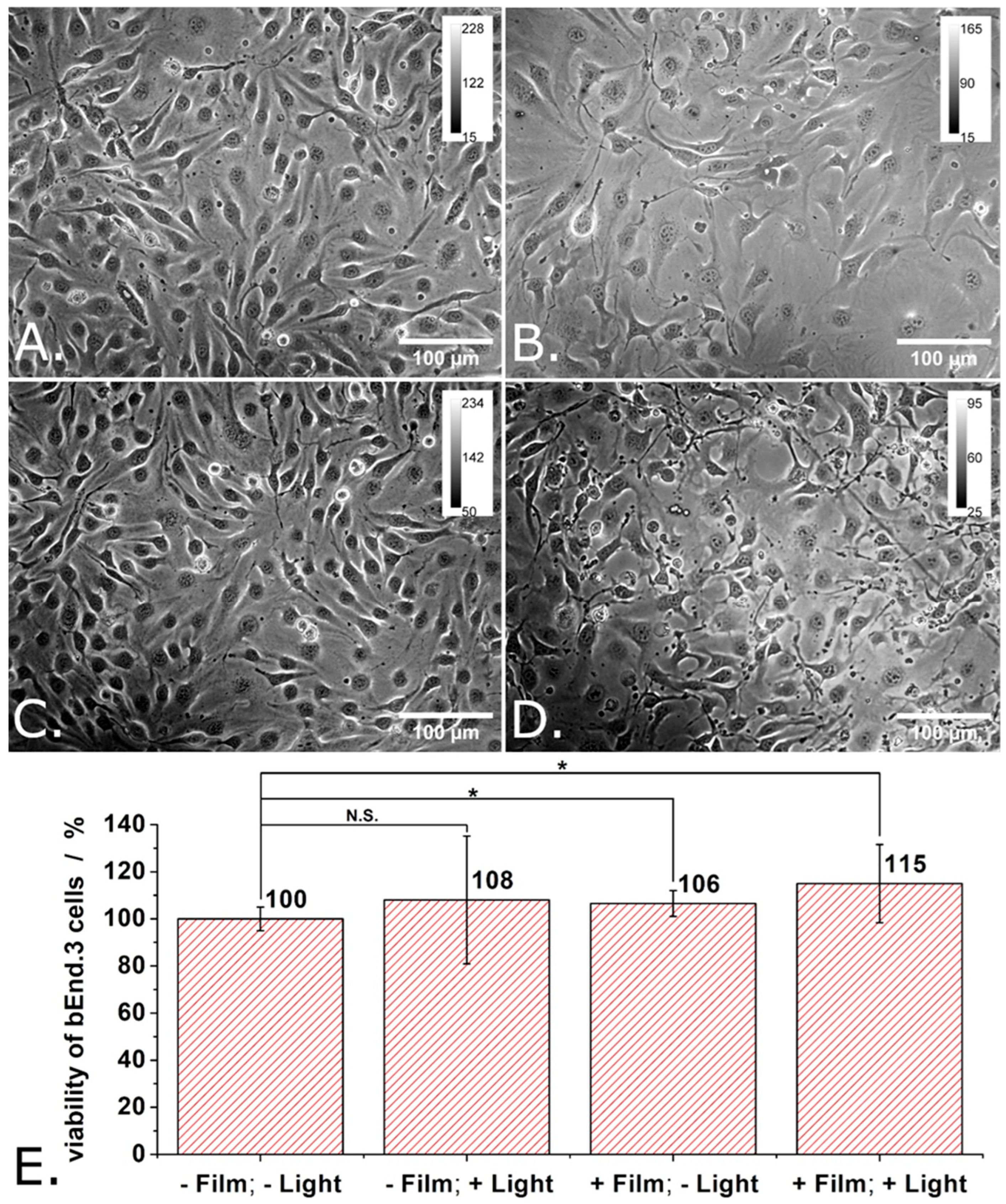 3.2. Viability of bEND.3 Cells in Contact with Different Forms of P3HT, with and Without Illumination