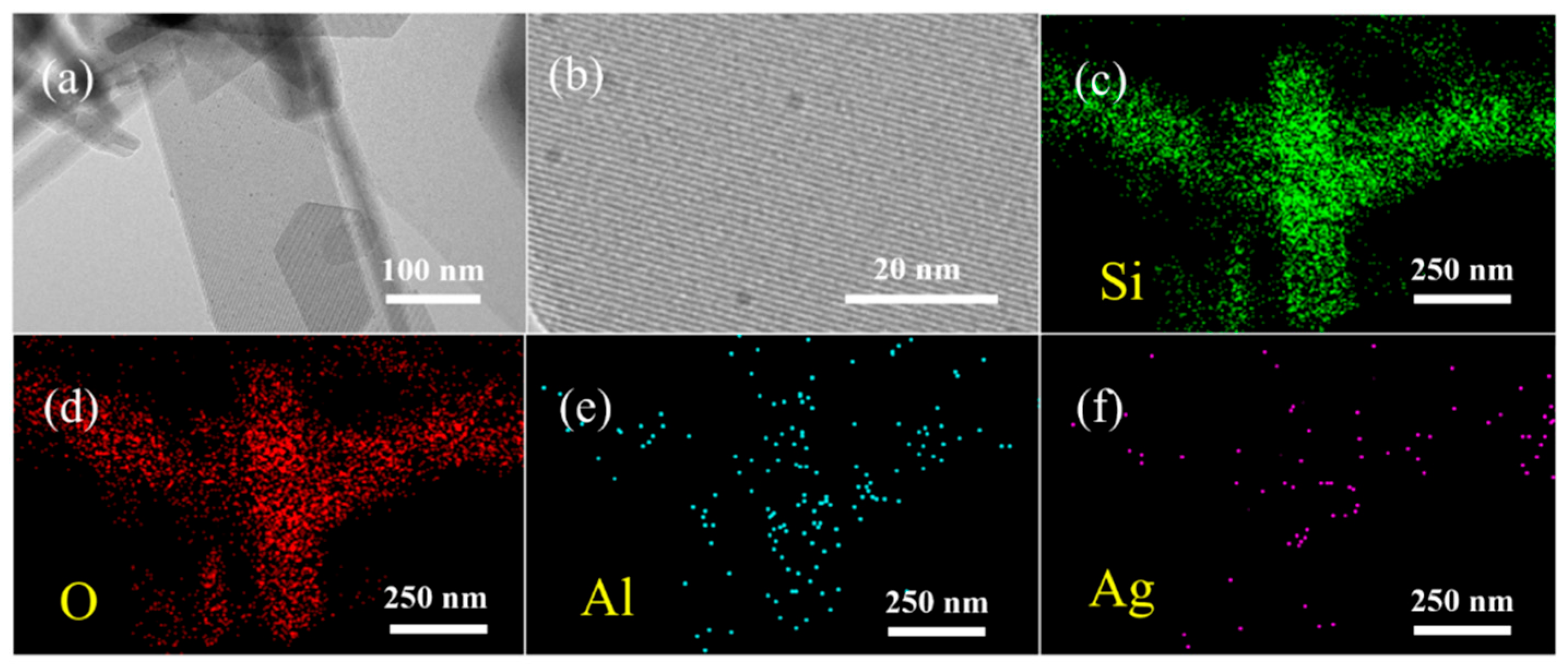 2.2. Ag-Ion Loading at Different Ratios on ZSM-5 Nanosheets