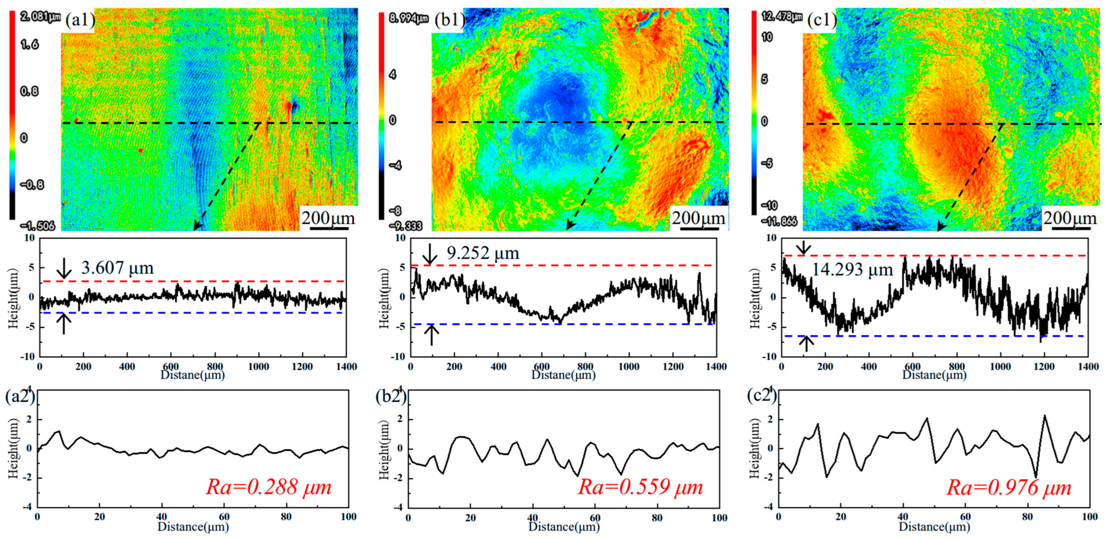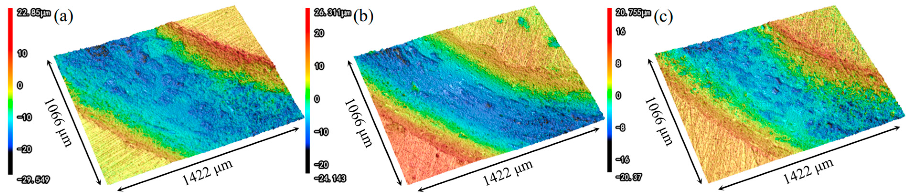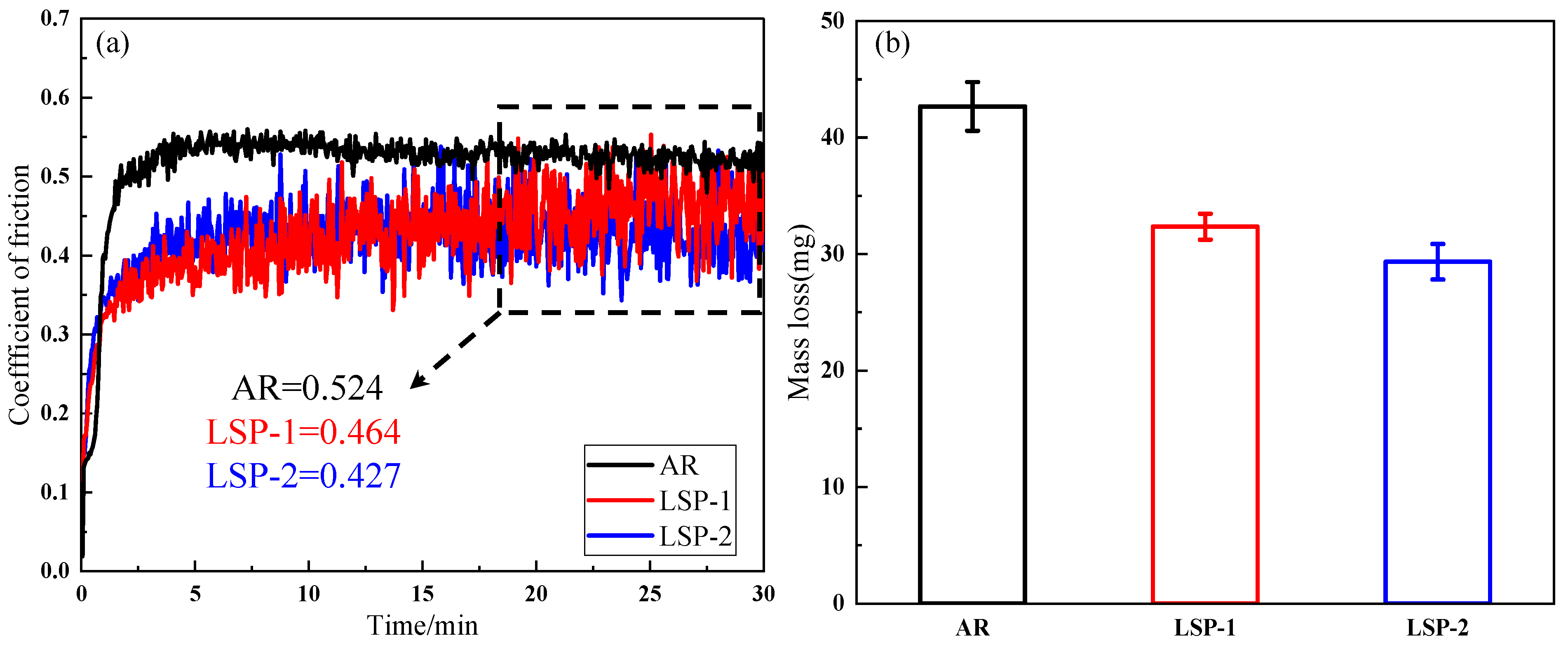 - Compared to the AR samples, the LSP samples exhibited lower friction coefficients and wear rates, with the wear coefficients decreasing by 11.4% and 18.5%, respectively.