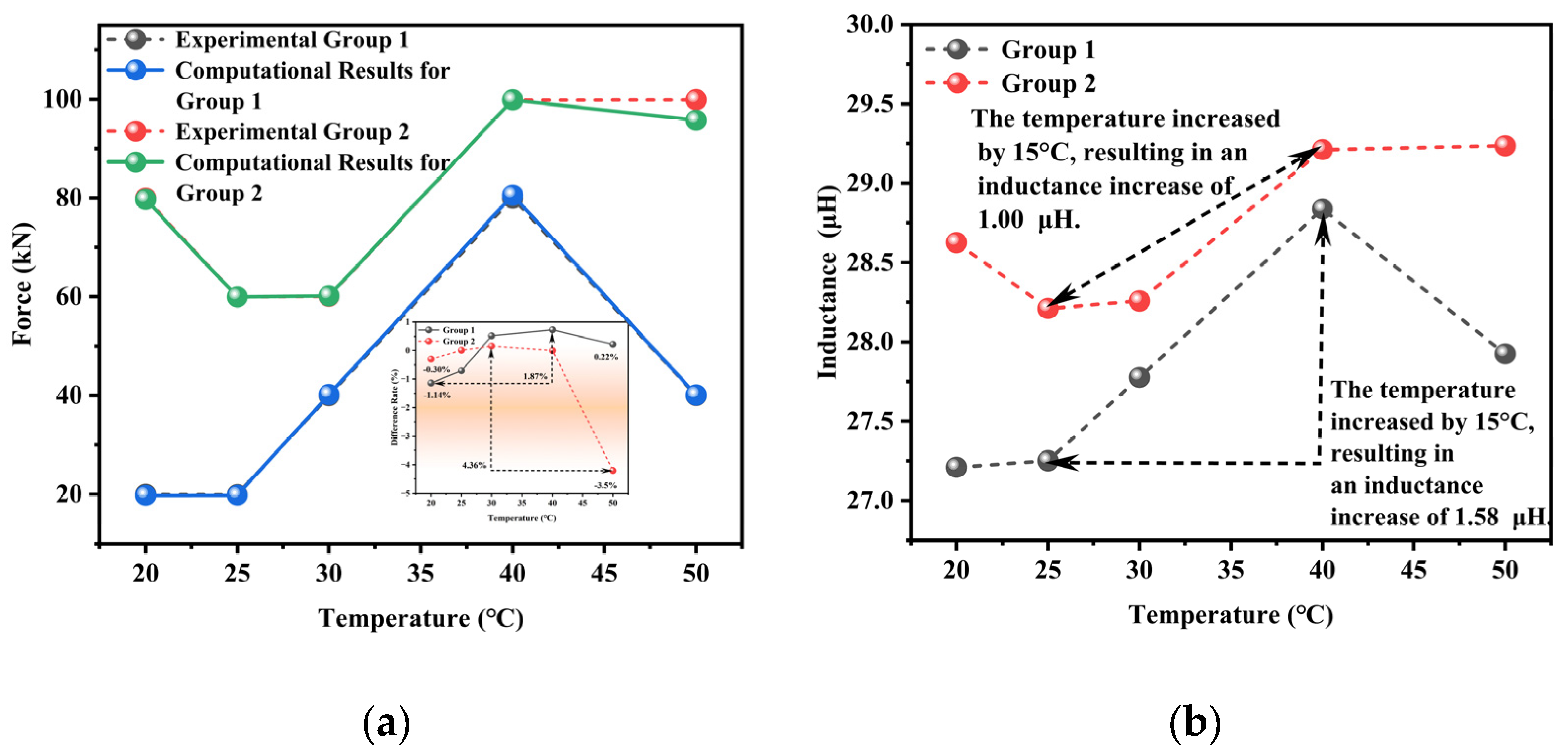3.2. Analysis of Temperature Effect on Inductance Under Tensile Load