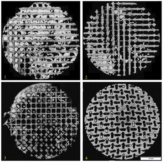 In case of samples 1 and 2, quite a big part of the area was filled with the fire-resistant glue, which can be seen in Figure 4. Unfortunately, the samples 3 and 4 were not infiltrated significantly more. In addition, these samples had lower infiltration success rate, most probably due to the geometry of their lattices. The highest infiltration success rate was reached with sample 1, the rate was 53.47%.