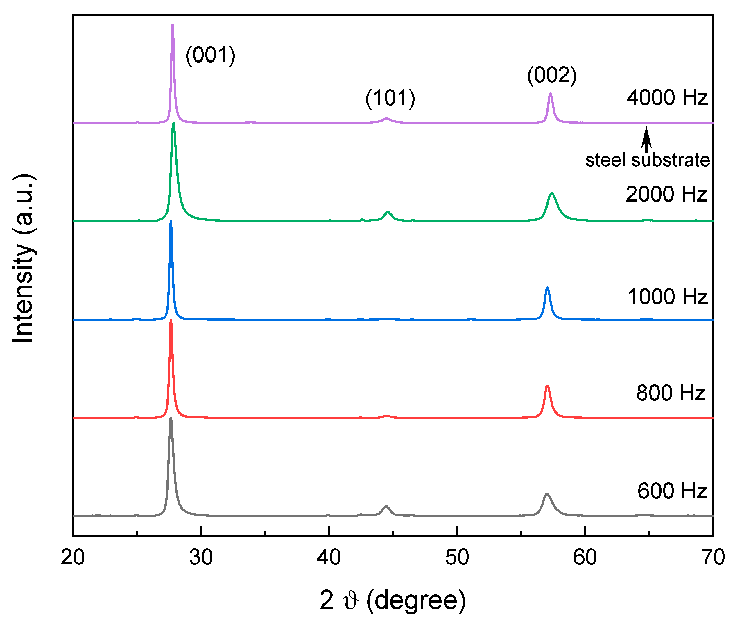 - The grain size increased significantly with both increasing frequency (from 15.6 nm to 27.7 nm) and increasing pulse width (from 22.6 nm to 35.4 nm).