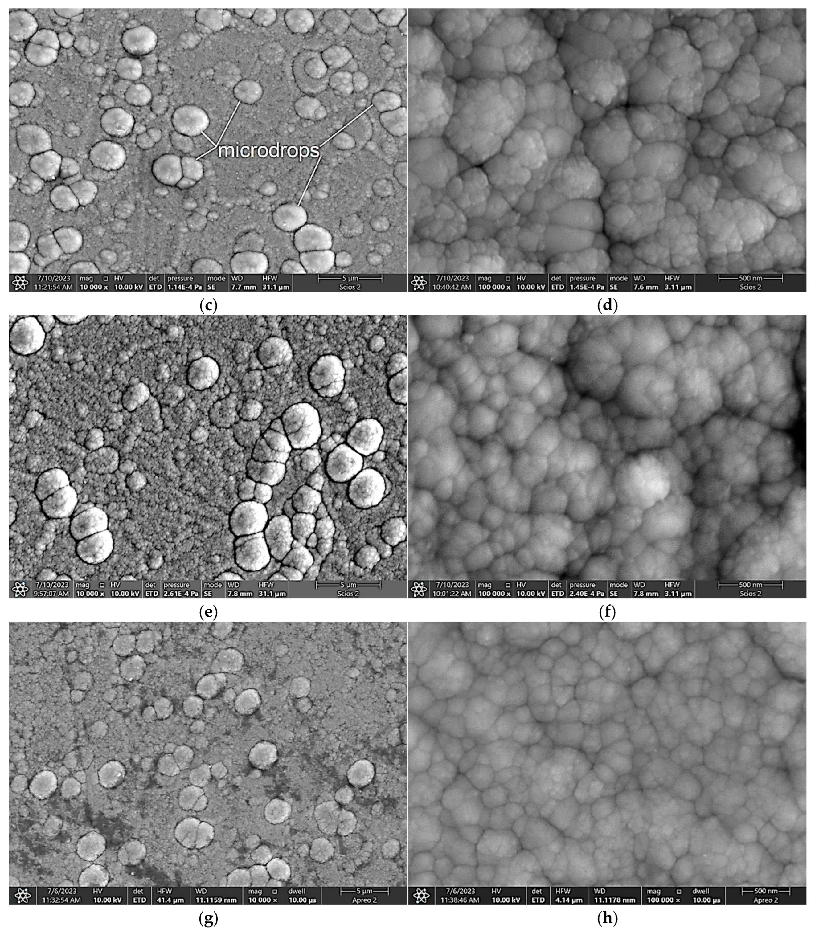 - Bai, H.; Li, J.; Gao, J.; Ni, J.; Bai, Y.; Jian, J.; Zhao, L.; Bai, B.; Cai, Z.; He, J.; et al. Comparison of CrN Coatings Prepared Using High-Power Impulse Magnetron Sputtering and Direct Current Magnetron Sputtering. Materials 2023, 16, 6303. [Google Scholar] [CrossRef]