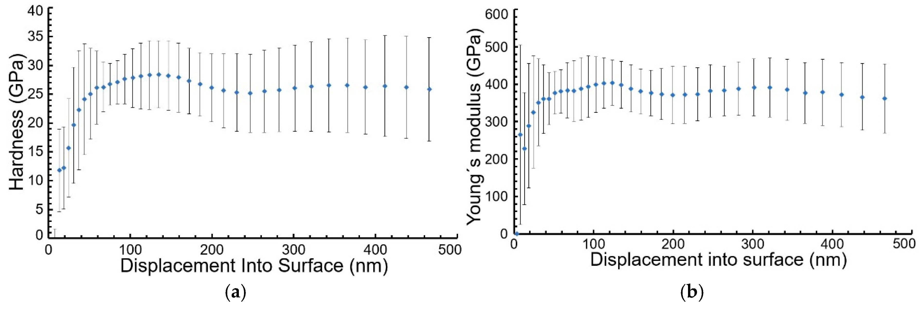 - Kataria, S.; Ramaseshan, R.; Dash, S.; Tyagi, A.K. Nanoindentation and Scratch Studies on Magnetron Sputtered Ti Thin Films. J. Nanosci. Nanotechnol. 2009, 9, 5476–5479. [Google Scholar] [CrossRef]