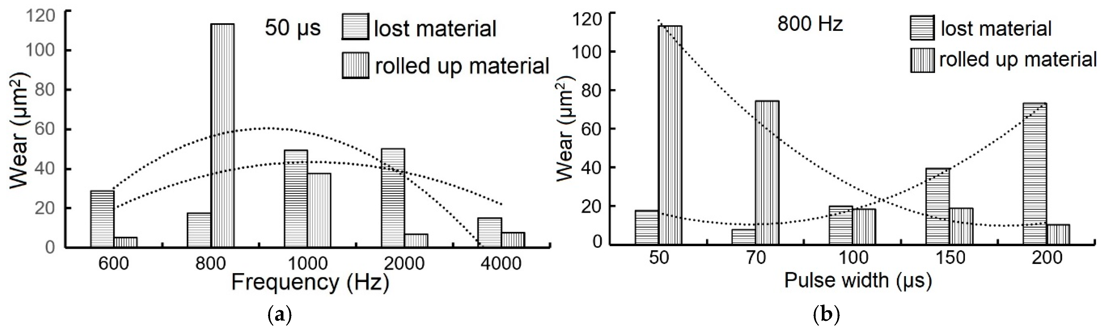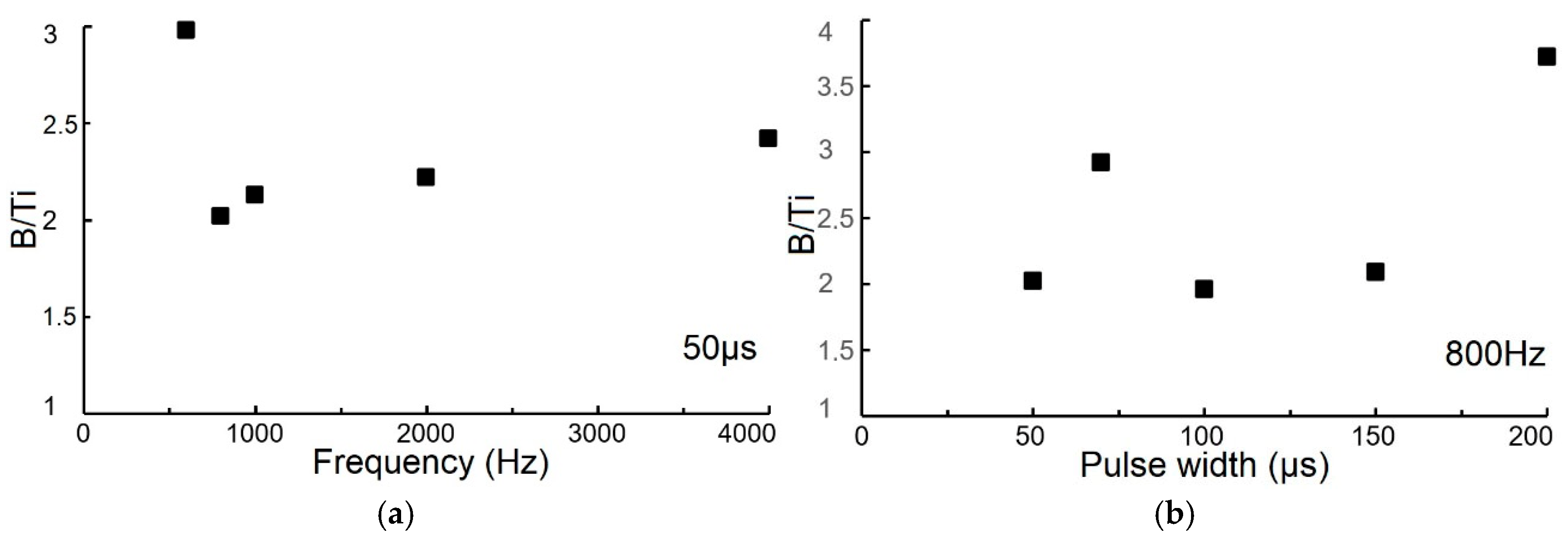 | Elemental Composition | Pulse Width (Hz)—Constant Frequency 800 Hz | ||||