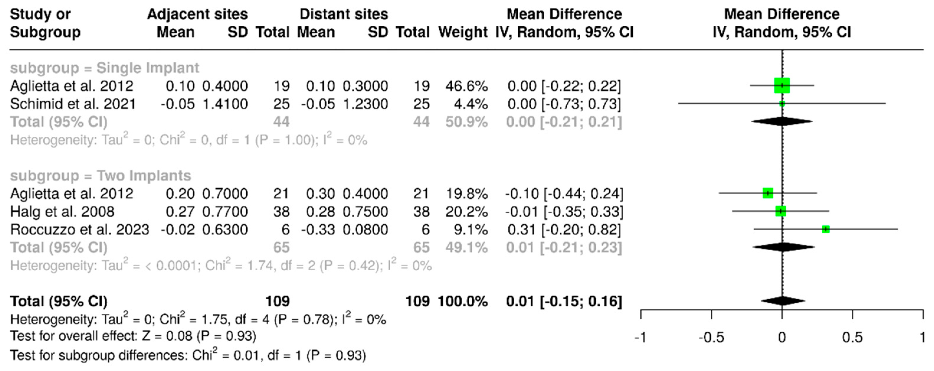 3.1.10. Marginal Bone Loss (Adjacent vs. Distant Sites)