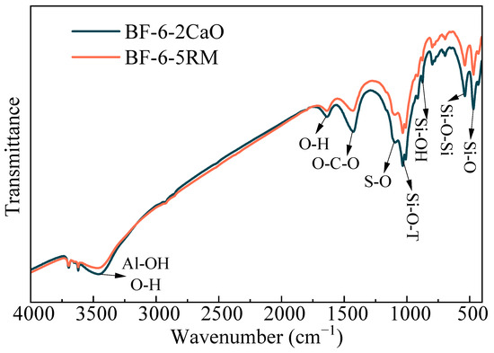 FTIR spectra of backfilling samples BF-6-2Cao and BF-6-5RM.