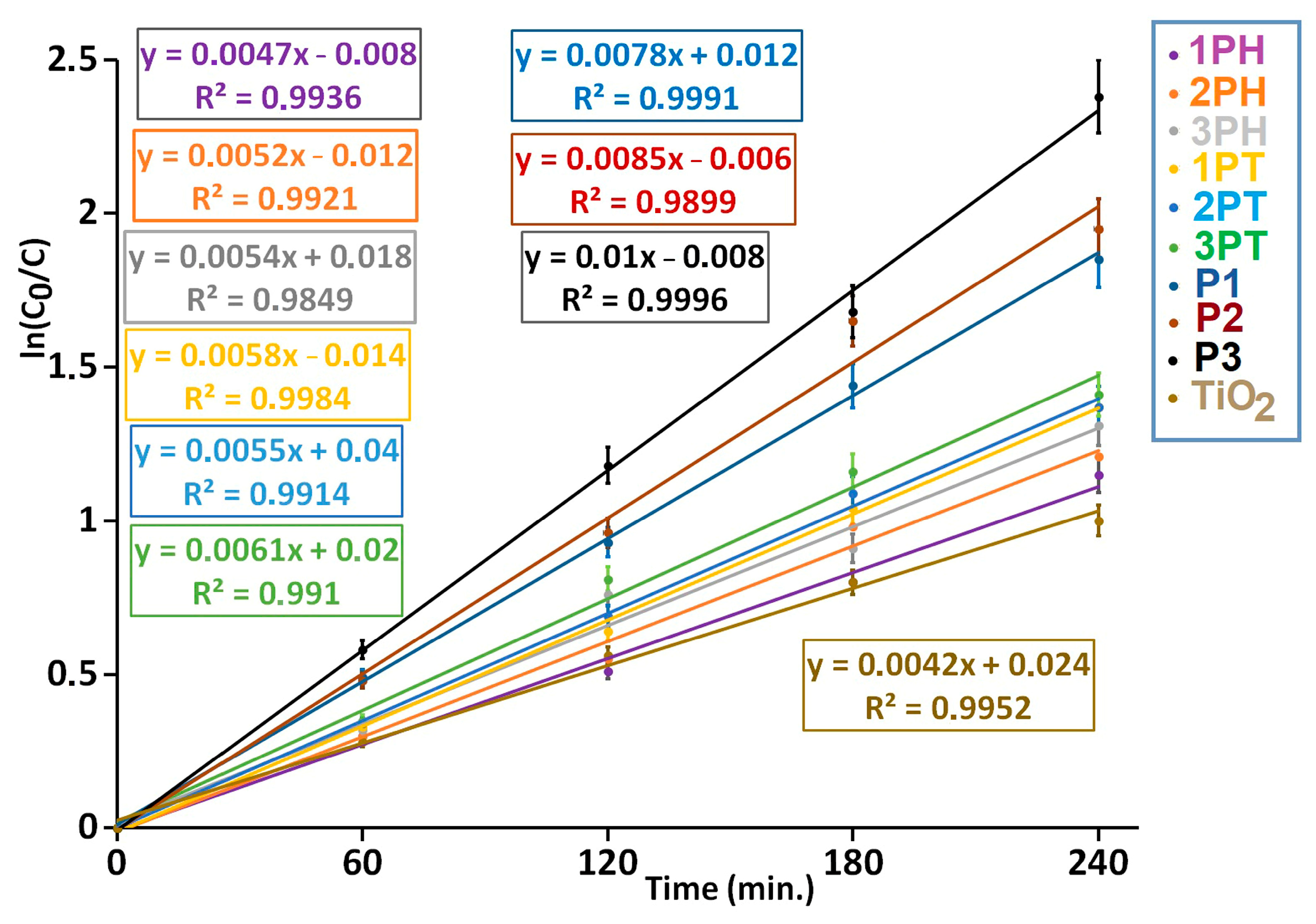 Figure 10. Among all samples, P3 shows the highest activity (k′ ≈ 0.010 min