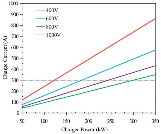 Relationship between charging current and charging power of different battery pack voltages. Reprinted from Ref. [].