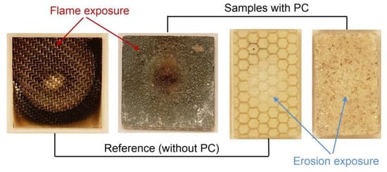 - Kandola, B.K.; Luangtriratana, P. Evaluation of Thermal Barrier Effect of Ceramic Microparticulate Surface Coatings on Glass Fibre-Reinforced Epoxy Composites. Compos. Part B Eng. 2014, 66, 381–387. [Google Scholar] [CrossRef]