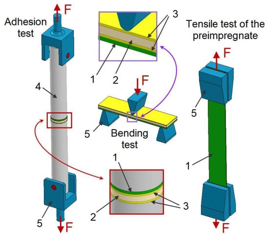 Three types of strength tests were carried out, schematics of which can be seen in Figure 10: