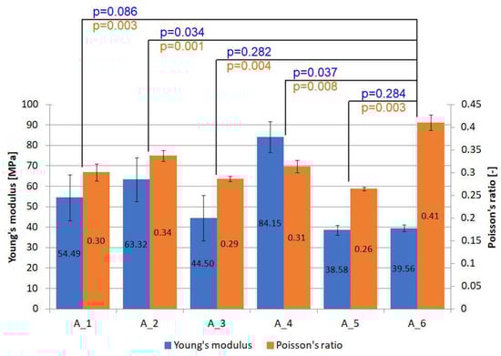 - The Young’s modulus, depending on the FL powders used, can vary between 38.58 MPa and 84.15 MPa, and the Poisson’s ratio varies from 0.26 to 0.34. This is important information that can be used to build a global numerical model in the future;