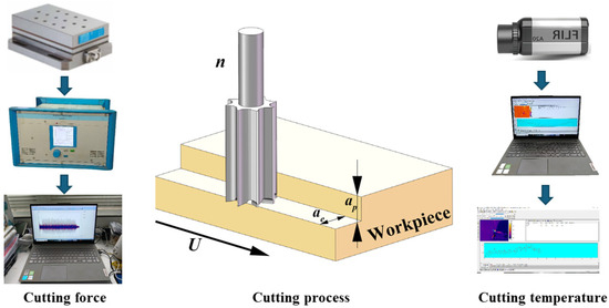 Currently, research on the cutting performance of WPC is predominantly focused on peripheral milling, mainly including cutting force, temperature, and surface roughness. Zhu et al. [5] explored the frictional behavior of WPC; their work showed friction is the main factor affecting cutting force, temperature, and surface roughness. The cutting force, temperature, and surface roughness of WPC during diamond peripheral milling was explored by Wang et al. [6] and Guo et al. [7], who found that increased spindle speed and rake angle can improve cutting performance in terms of lower cutting force, temperature, and surface roughness. Meanwhile, built-up was examined by Zhu et al. [8]; they found that an increase of cutting force and temperature by high cutting speed and depth led to the built-up edge, the generation of which changed the work angle, thereby resulting in a poorer machined surface with high roughness. In general, cutting force, heat, and quality are crucial indicators influencing the cutting performance of WPC. Scientific cutting parameters play a key role in reducing cutting force and heat while improving surface quality [9].