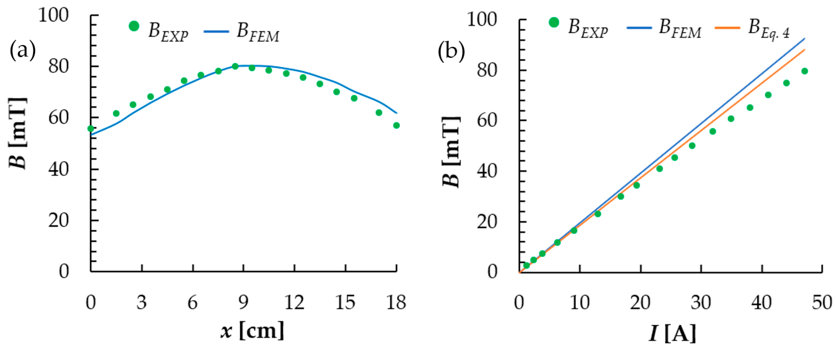 2.1.3. Electromagnet and Magnetic Field: Setup, Modeling and Verification
