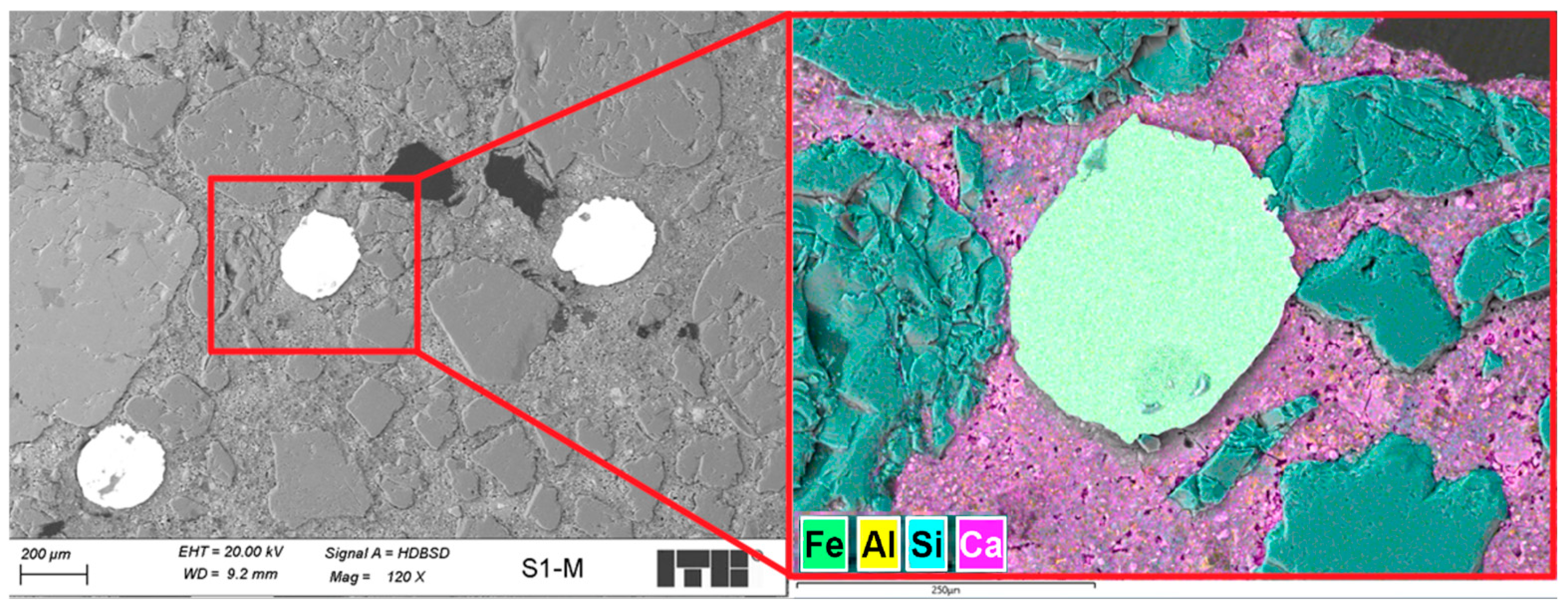 - Chyliński, F. Microstructural Assessment of Pozzolanic Activity of Ilmenite Mud Waste Compared to Fly Ash in Cement Composites. Materials 2024, 17, 2483. [Google Scholar] [CrossRef]