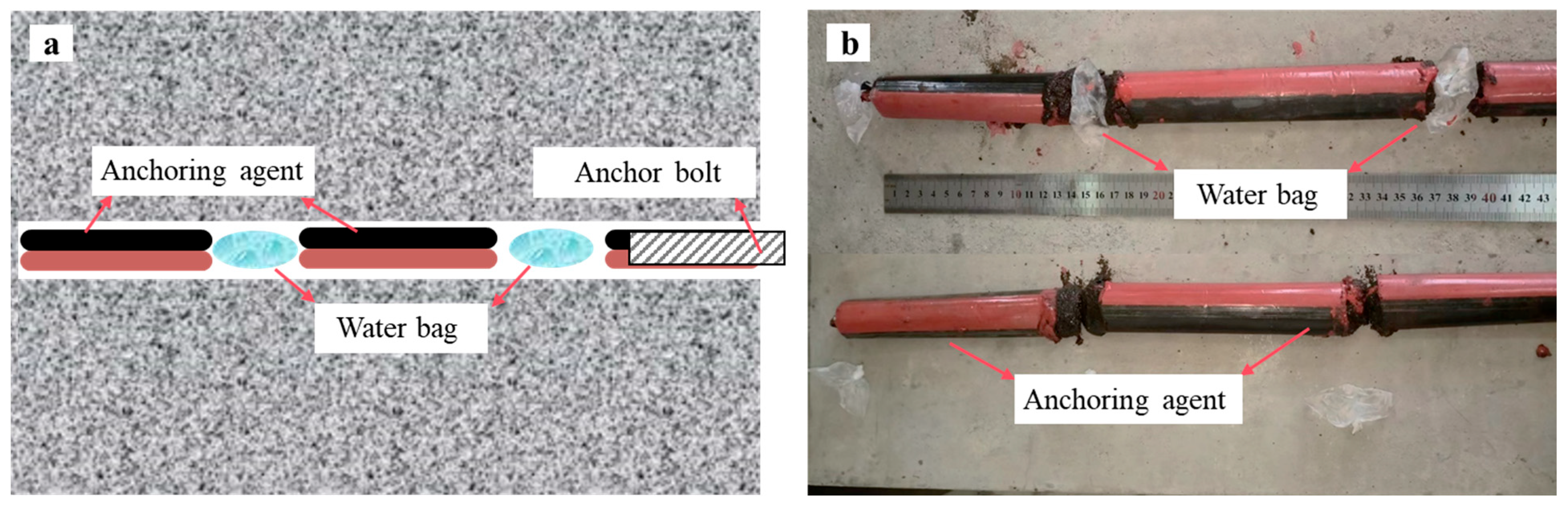- Wang, J.; Yao, Z.; Tang, J.; Zhao, J.; Liu, X.; Xu, Y.; Guo, L. Deterioration mechanism and performance enhancement of resin anchoring agents in water-rich environments. Constr. Build. Mater. 2025, 464, 140173. [Google Scholar] [CrossRef]