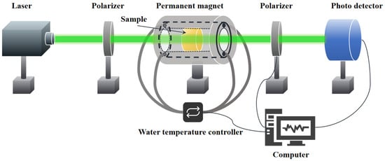 - Williams, P.A.; Rose, A.H.; Day, G.W.; Milner, T.E.; Deeter, M.N. Temperature Dependence of the Verdet Constant in Several Diamagnetic Glasses. Appl. Optics 1991, 30, 1176–1178. [Google Scholar] [CrossRef]