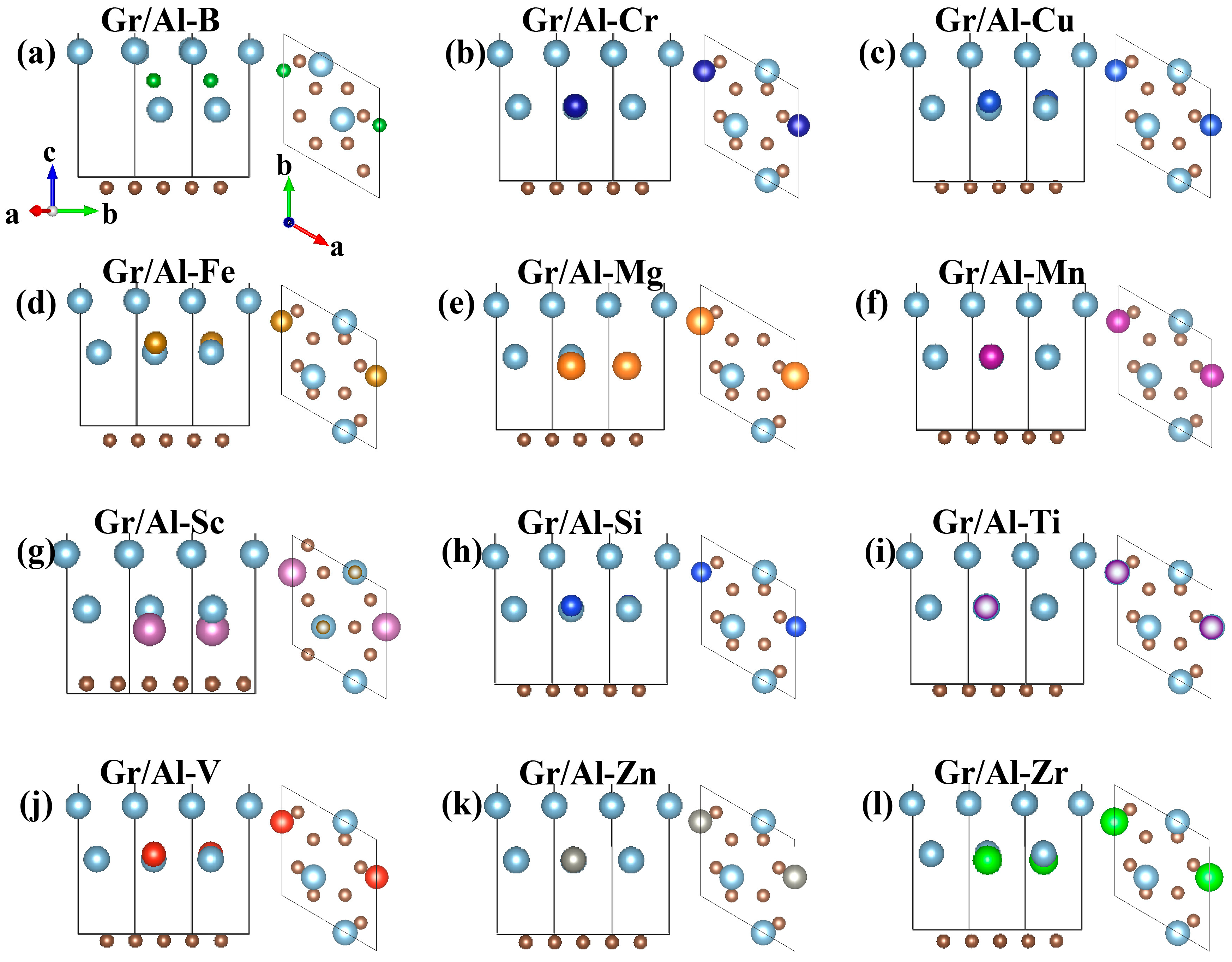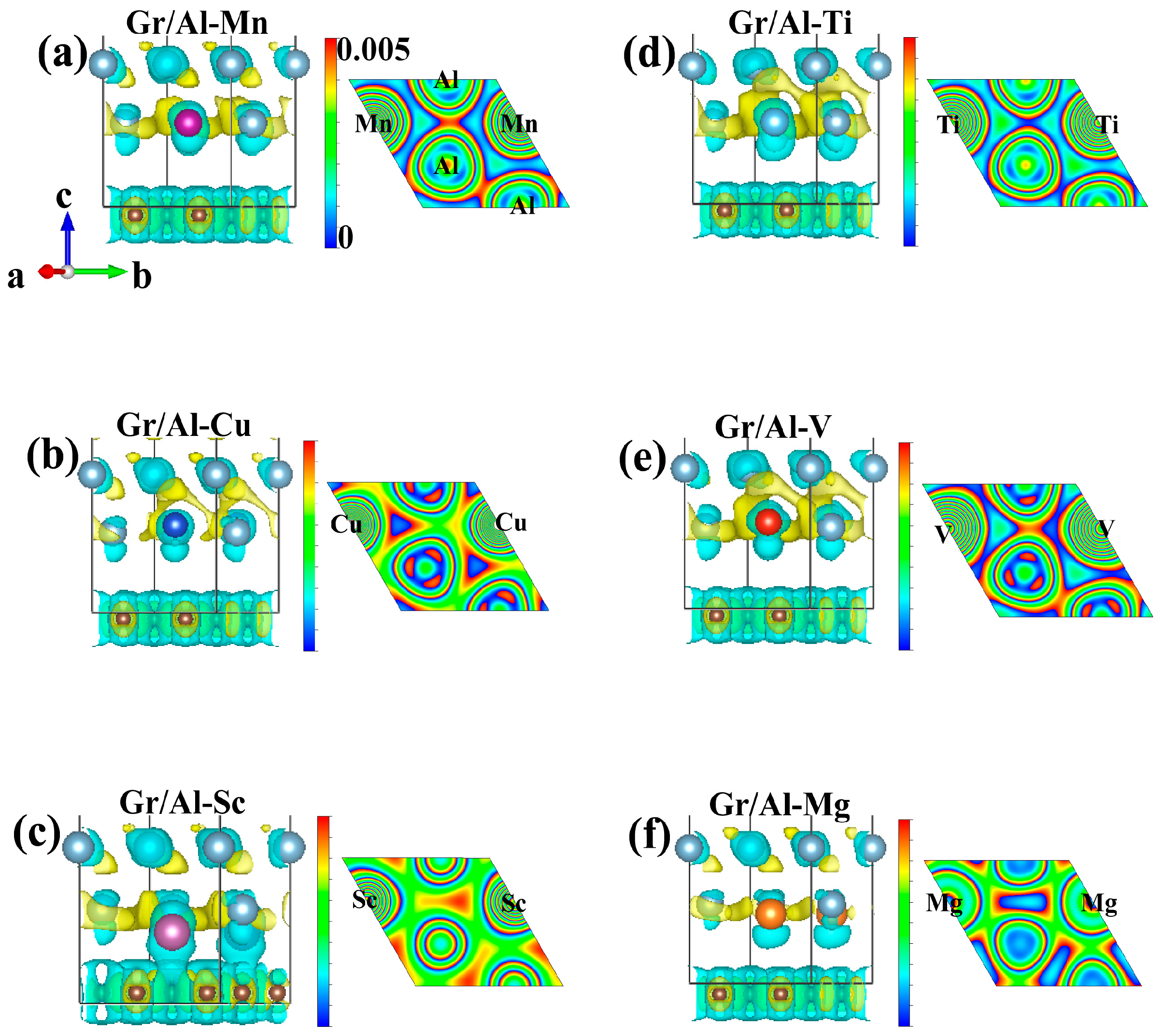 - Huang, J.; Wang, K.; Li, M.; Cheng, Y.; Lai, Z.; Hu, J.; Qu, N.; Liu, Y.; Zhou, F.; Zhu, J. Influence of alloy atoms on the electronic structure and interfacial properties of graphene/aluminum composites: Theoretical calculation and experimental verification. Vacuum 2023, 215, 112253. [Google Scholar] [CrossRef]