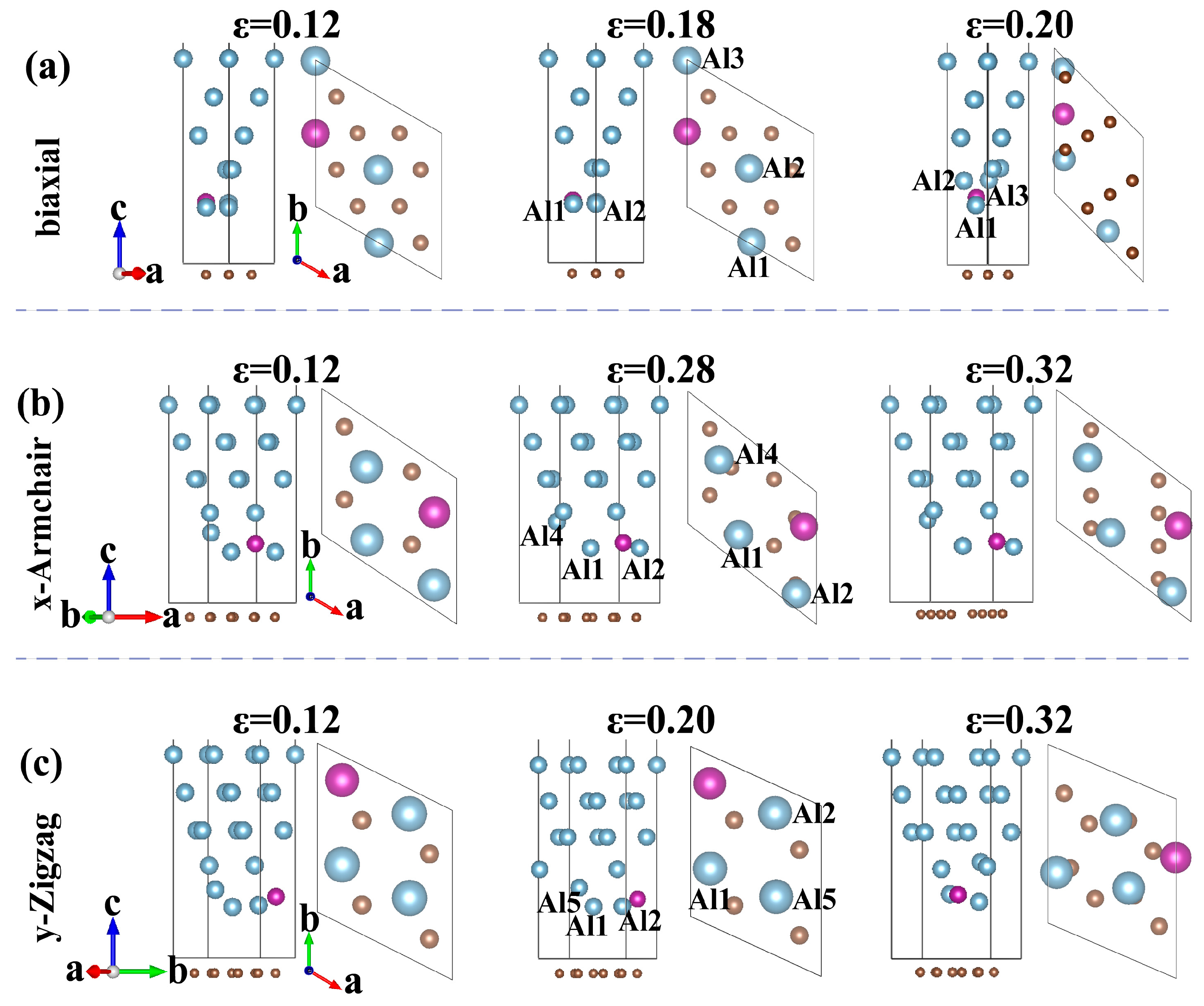 Directions | ε | a/Å | b/Å | γ/° | dAl1-Mn/Å | dAl2-Mn/Å |