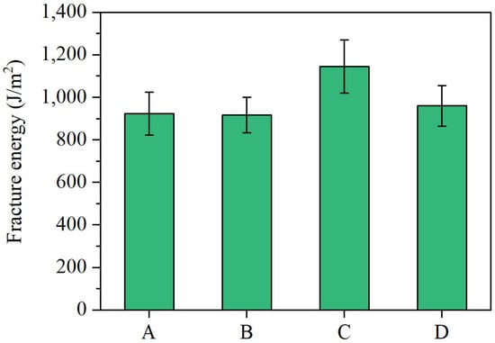 Figure 10 presents the results of the SCB tests for the different mixtures. Also, ANOVA statistical tests are performed based on the data to determine whether the performance differences among the samples are due to experimental error. As can be seen from the figure, by comparing the SCB fracture energy of different asphalt mixture formulations, the ranking of low-temperature performance was established as follows: Gf(C) > Gf(D) > Gf(A) > Gf(B), which is consistent with the BBR test results. Compared to conventional SBS-modified asphalt mixtures, all three Sasobit-containing composite-modified asphalt formulations demonstrated superior low-temperature performance. Notably, the formulation containing rubber powder exhibited an approximately 24% improvement in low-temperature crack resistance compared to the control group. The ANOVA statistical results also indicate that significant differences exist in the low-temperature performance among the different samples.