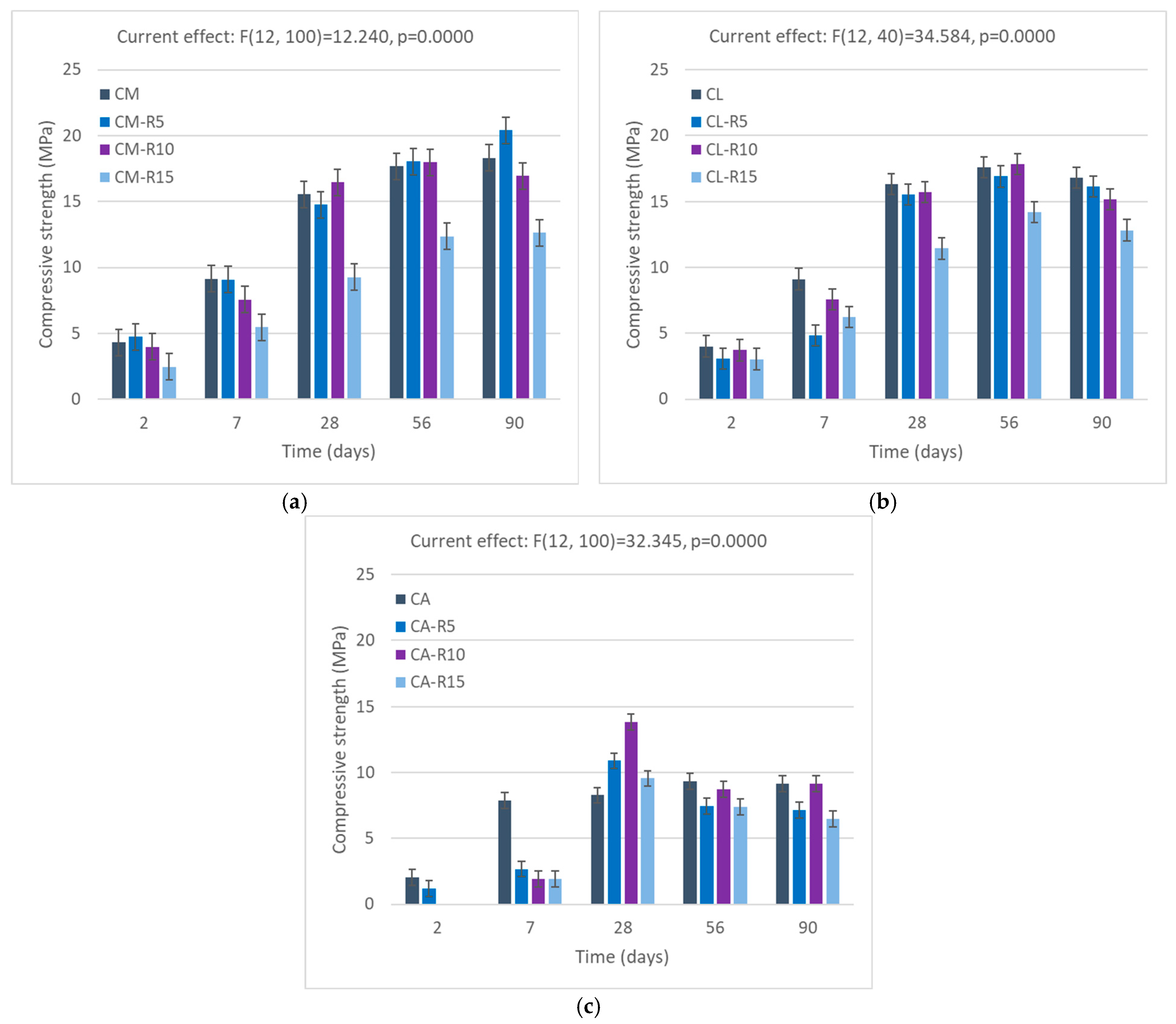 3.3.1. Compressive Strength of Mortars with RHA Addition