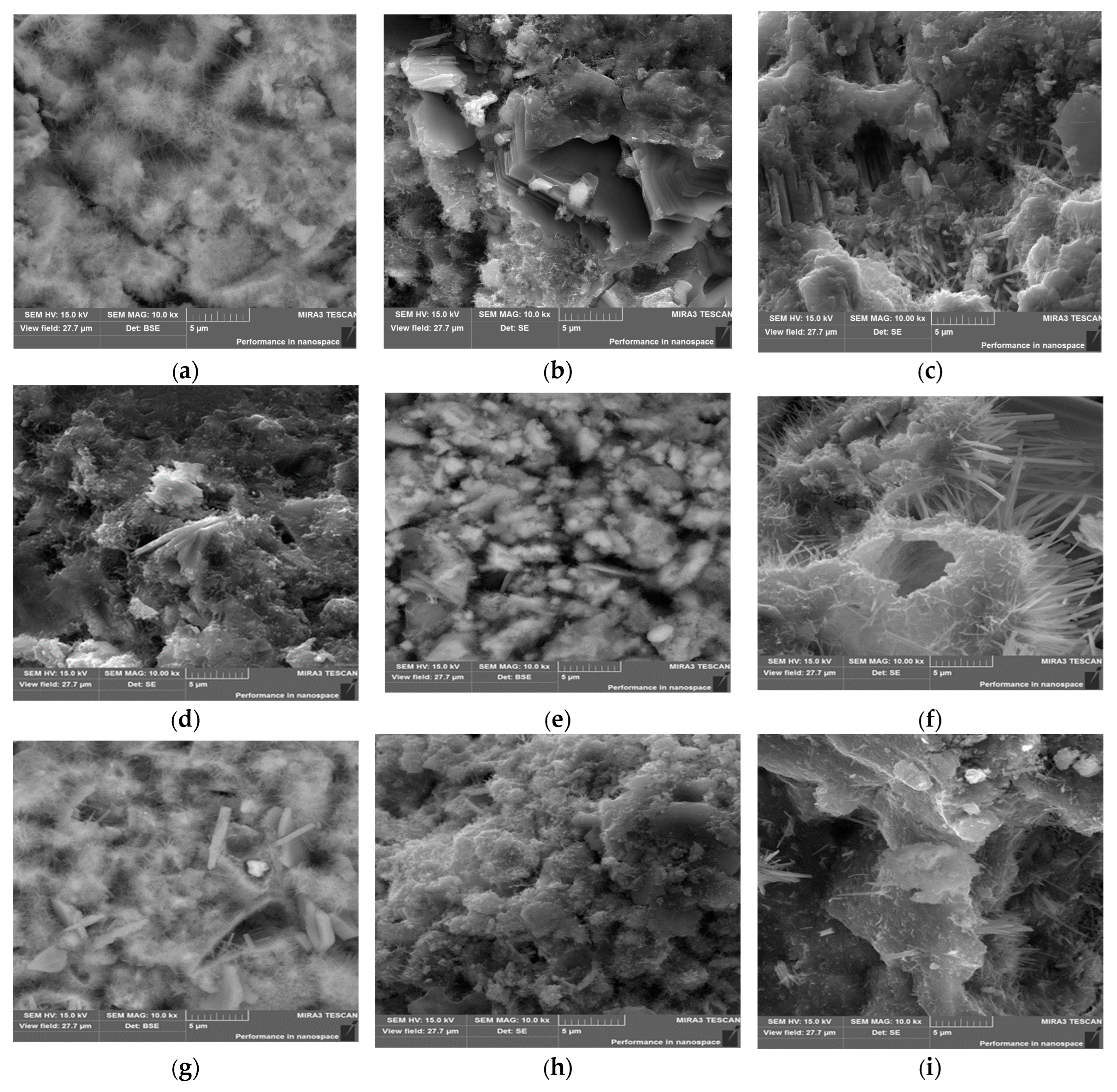 - Zhang, M.H.; Lastra, R.; Malhotra, V.M. Rice-husk ash paste and concrete: Some aspects of hydration and the microstructure of the interfacial zone between the aggregate and paste. Cem. Concr. Res. 1996, 26, 963–977. [Google Scholar] [CrossRef]