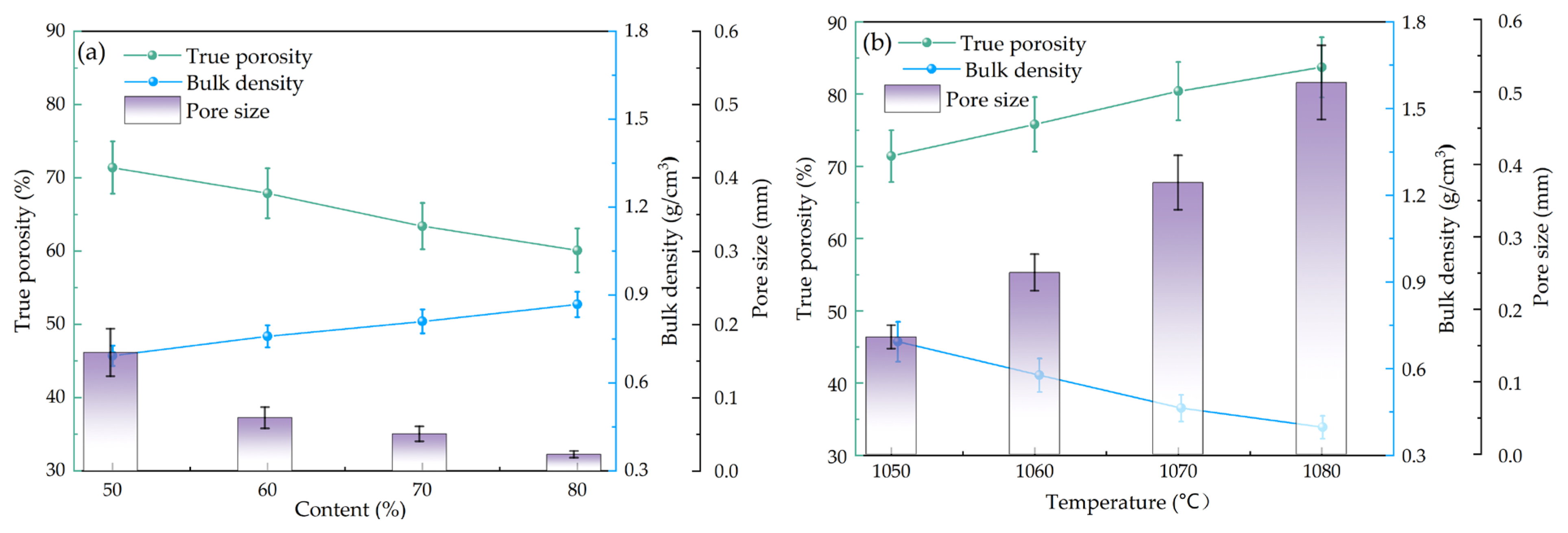 The composition, particle size and sintering temperature of raw materials will affect the true porosity, bulk density and pore size of porous ceramics.