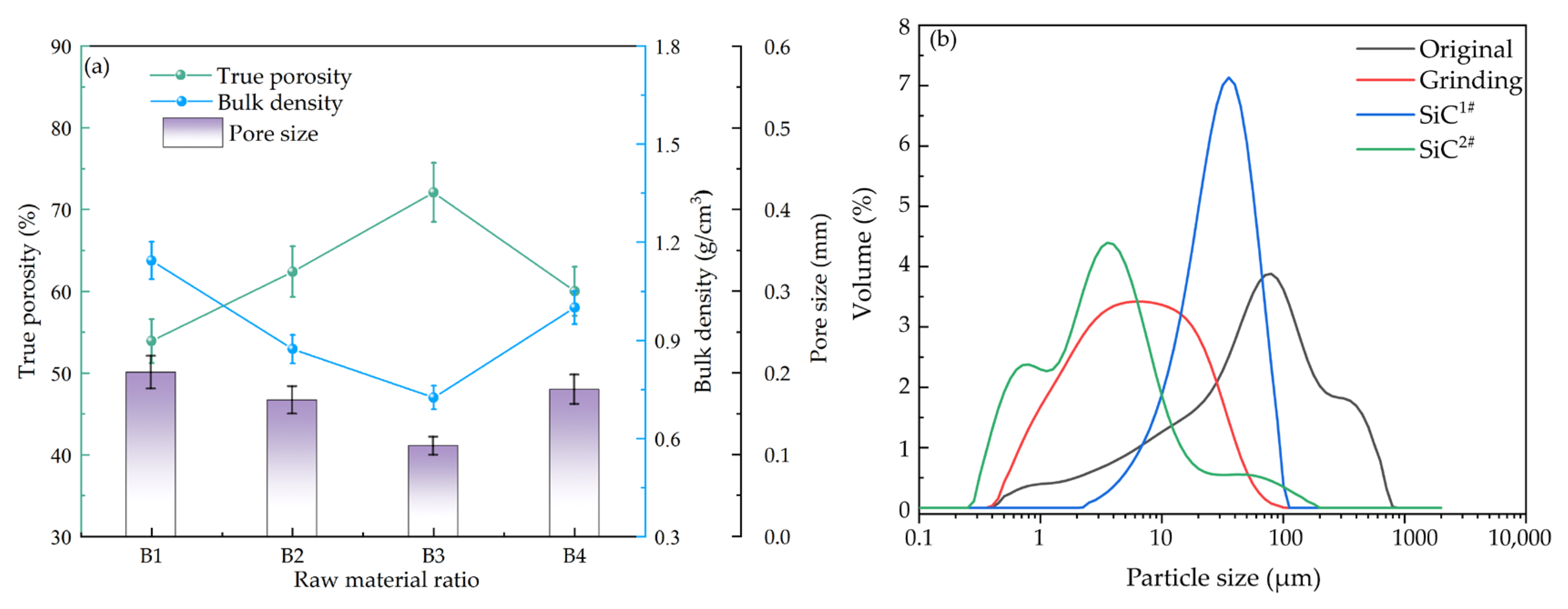 3, and the average pore diameter of approximately 0.11 mm. the performance of Sample B4 (coarse GT + fine SiC2#) provides key insights into the synergistic effect of raw material particle sizes. With a true porosity of 60%, a bulk density of 1.0 g/cm