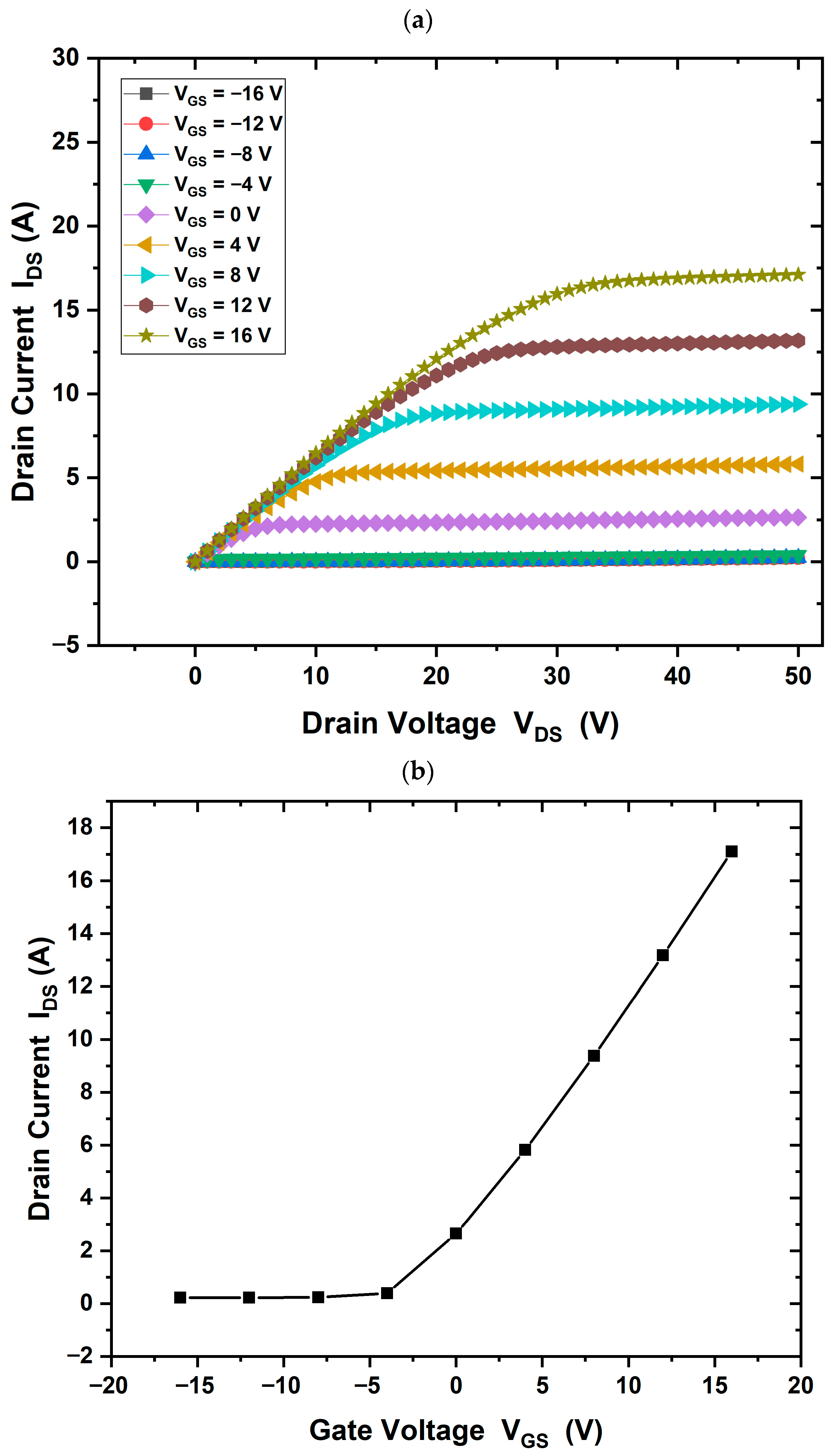 - Cai, X.; Feng, Z.; Wang, Z.; Song, X.; Hu, Z.; Tian, X.; Zhang, C.; Liu, Z.; Fenf, Q.; Zhou, H.; et al. Demonstration of the normally off β-Ga2O3 MOSFET with high threshold voltage and high current density. Appl. Phys. Lett. 2023, 123, 193501. [Google Scholar] [CrossRef]