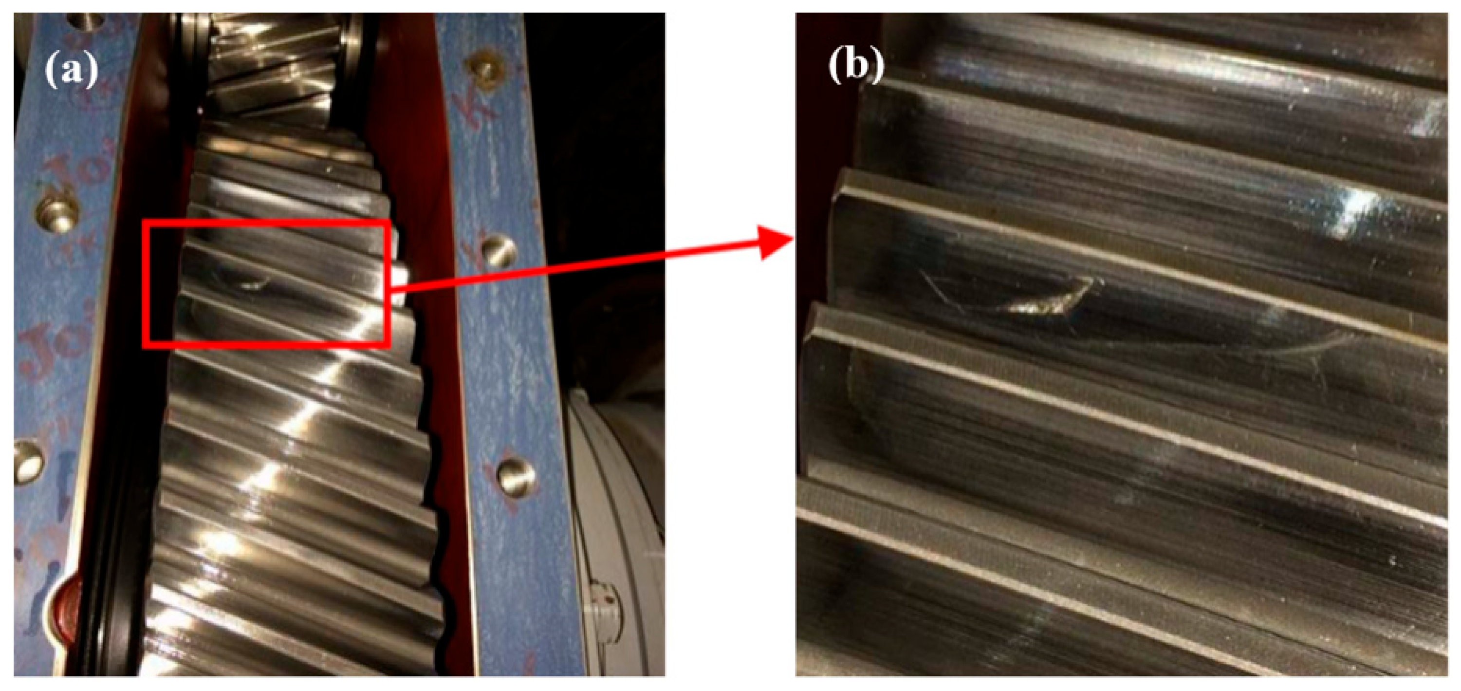9. Ghosh, D.; Mondal, A.; Hussain, N.; Kumar De, S.; Ray, S.; Subramanian, C. Failure analysis of helical gear pinion. Mater. Today Proc. 2022, 66, 3714–3717. [Google Scholar] [CrossRef]