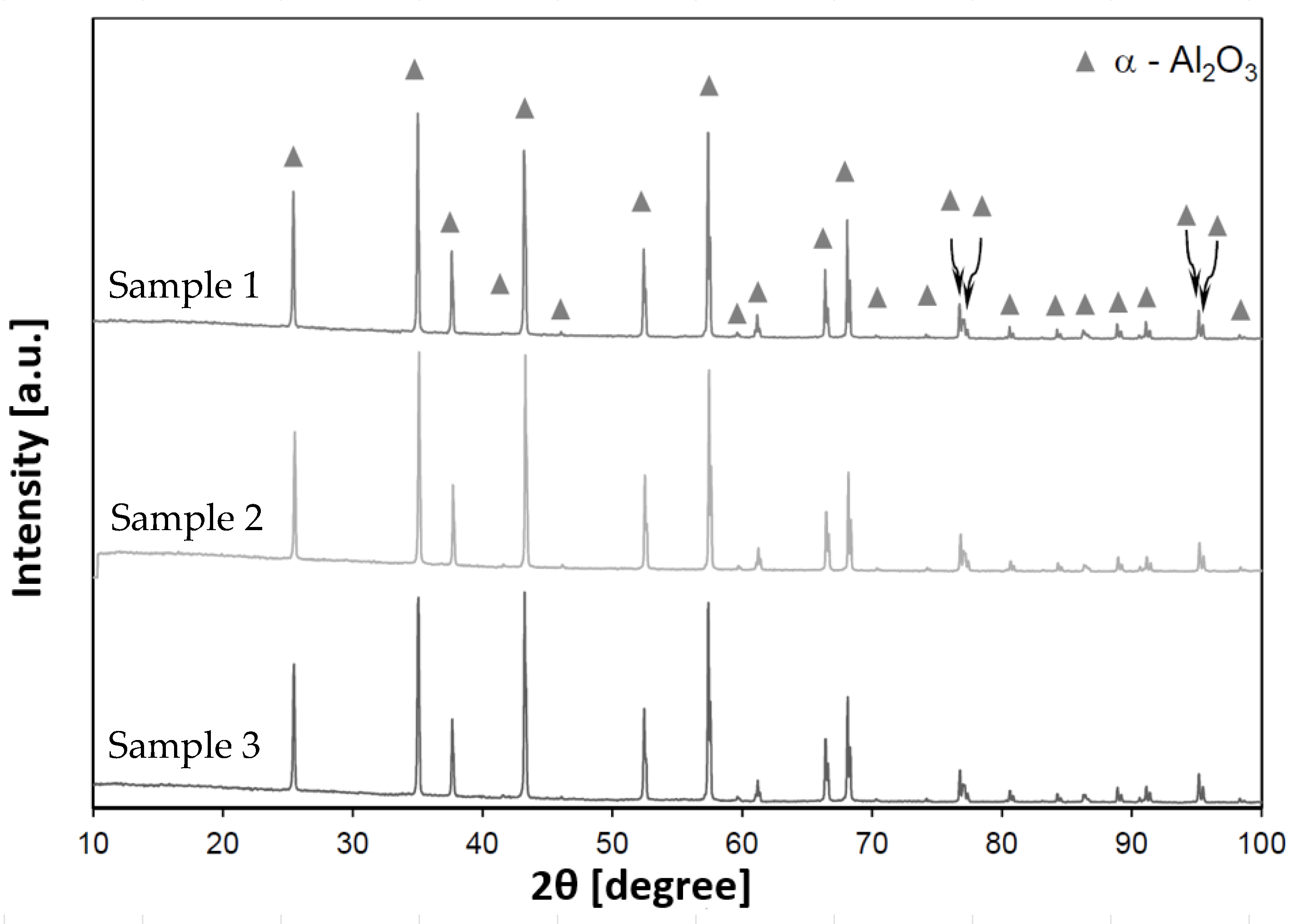 - Vukšić, M.; Žmak, I.; Ćurković, L.; Kocjan, A. Effect of Two-Step Sintering on Properties of Alumina Ceramics Containing Waste Alumina Powder. Materials 2022, 15, 7840. [Google Scholar] [CrossRef]