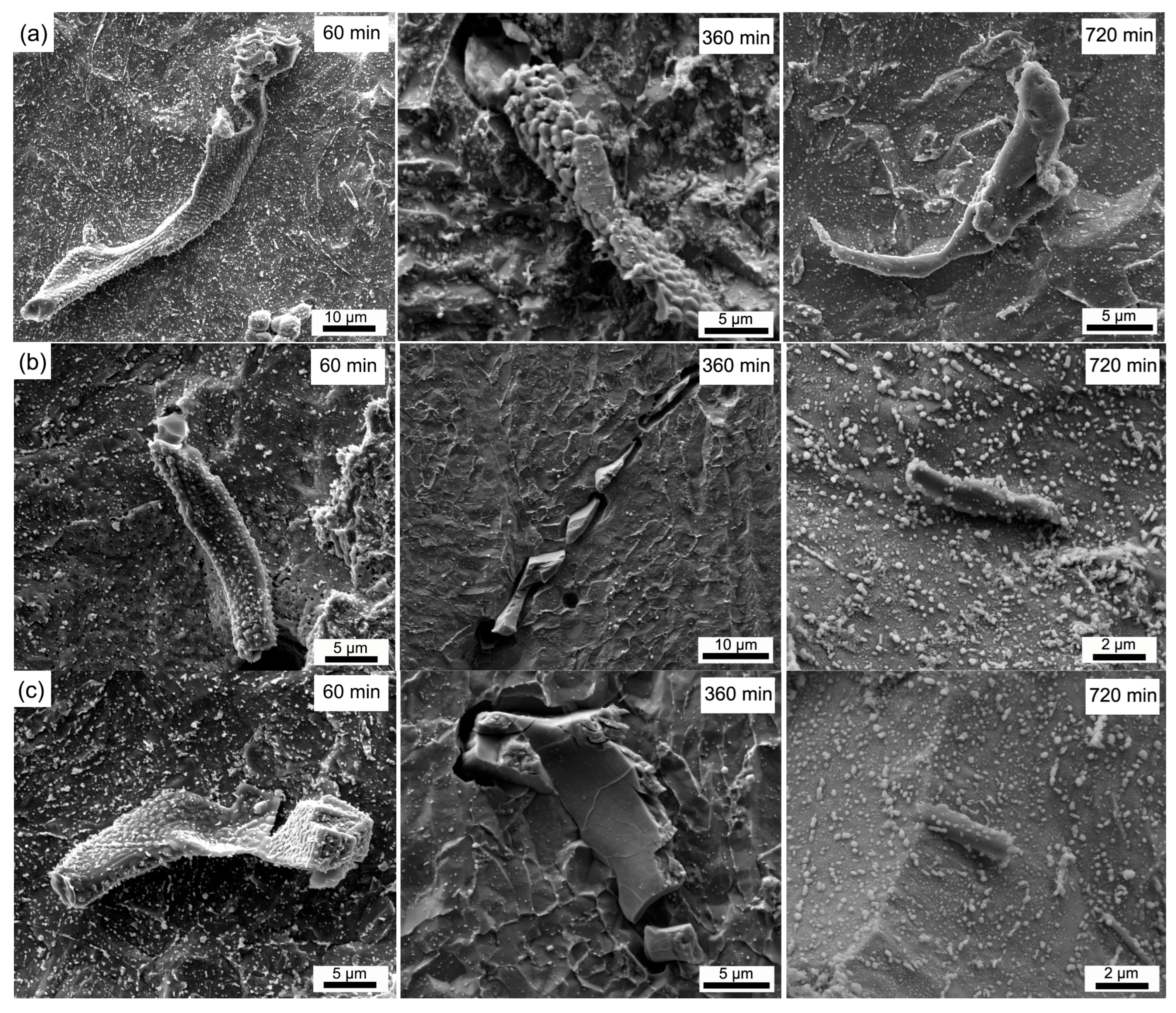 - Wang, Y.-L.; Song, K.-X.; Zhang, Y.-M.; Wang, G.-X. Microstructure evolution and fracture mechanism of H13 steel during high temperature tensile deformation. Mater. Sci. Eng. A 2019, 746, 127–133. [Google Scholar] [CrossRef]