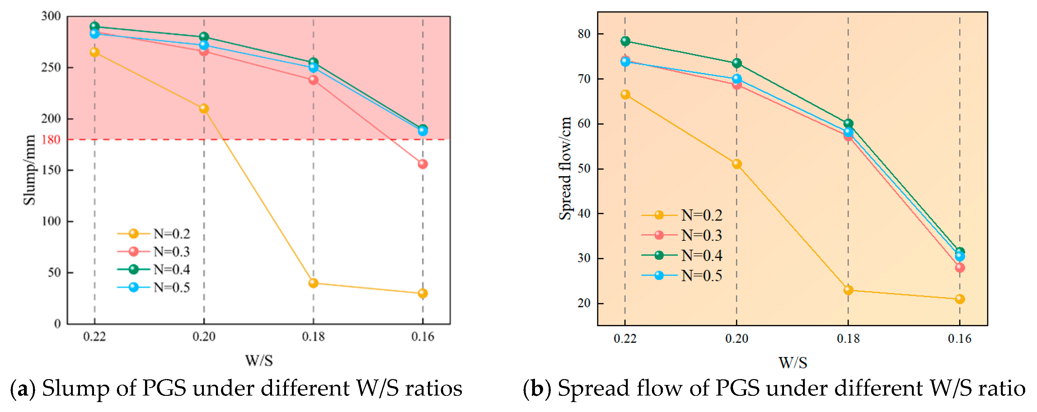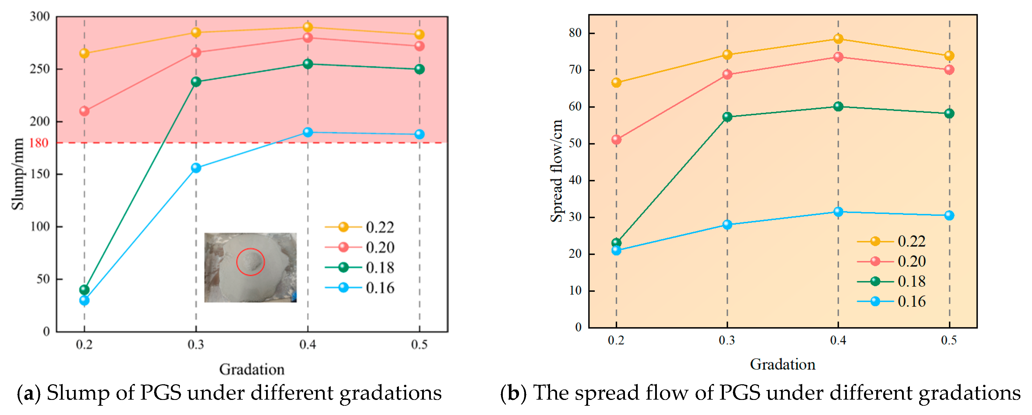 3.3. The Influence of Fluidity Under Different Gradation and W/S