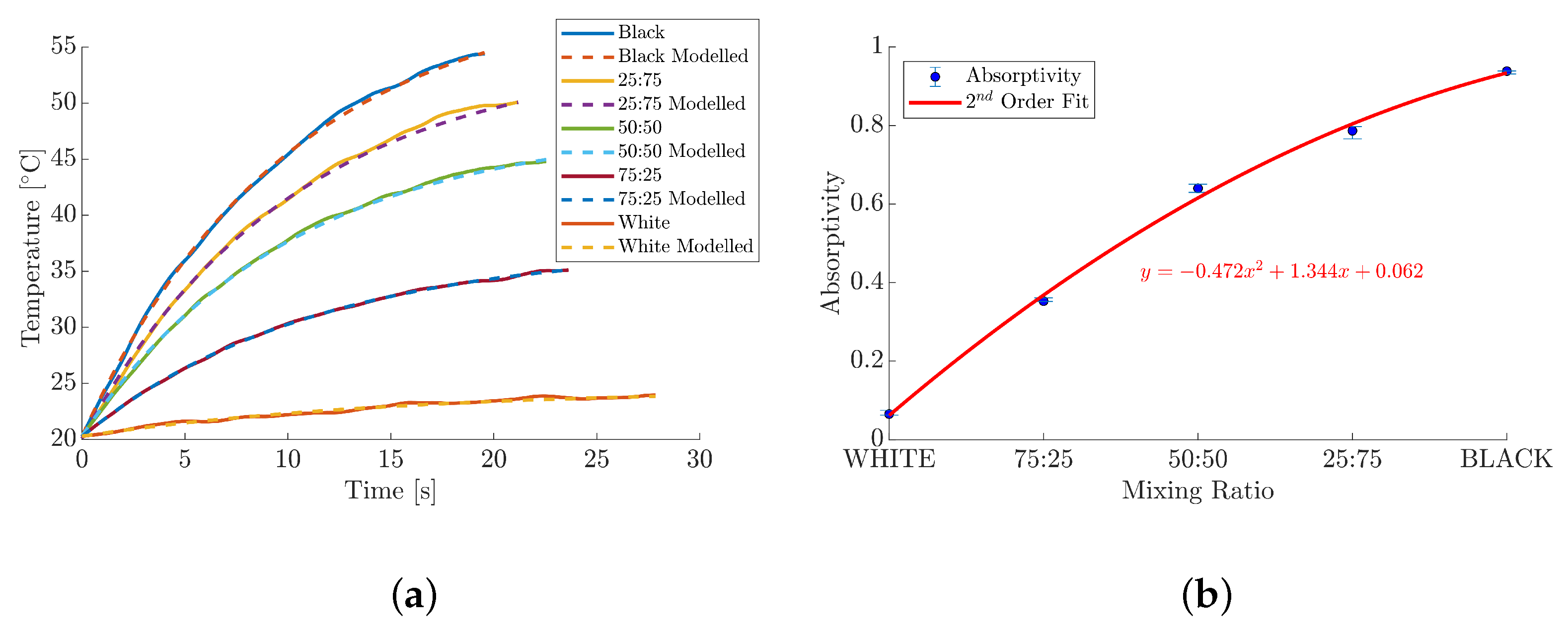 - Wallace, N.J.; Jones, M.R.; Crane, N.B. Spectral absorption coefficient of additive manufacturing materials. J. Therm. Sci. Eng. Appl. 2021, 13, 041012. [Google Scholar] [CrossRef]