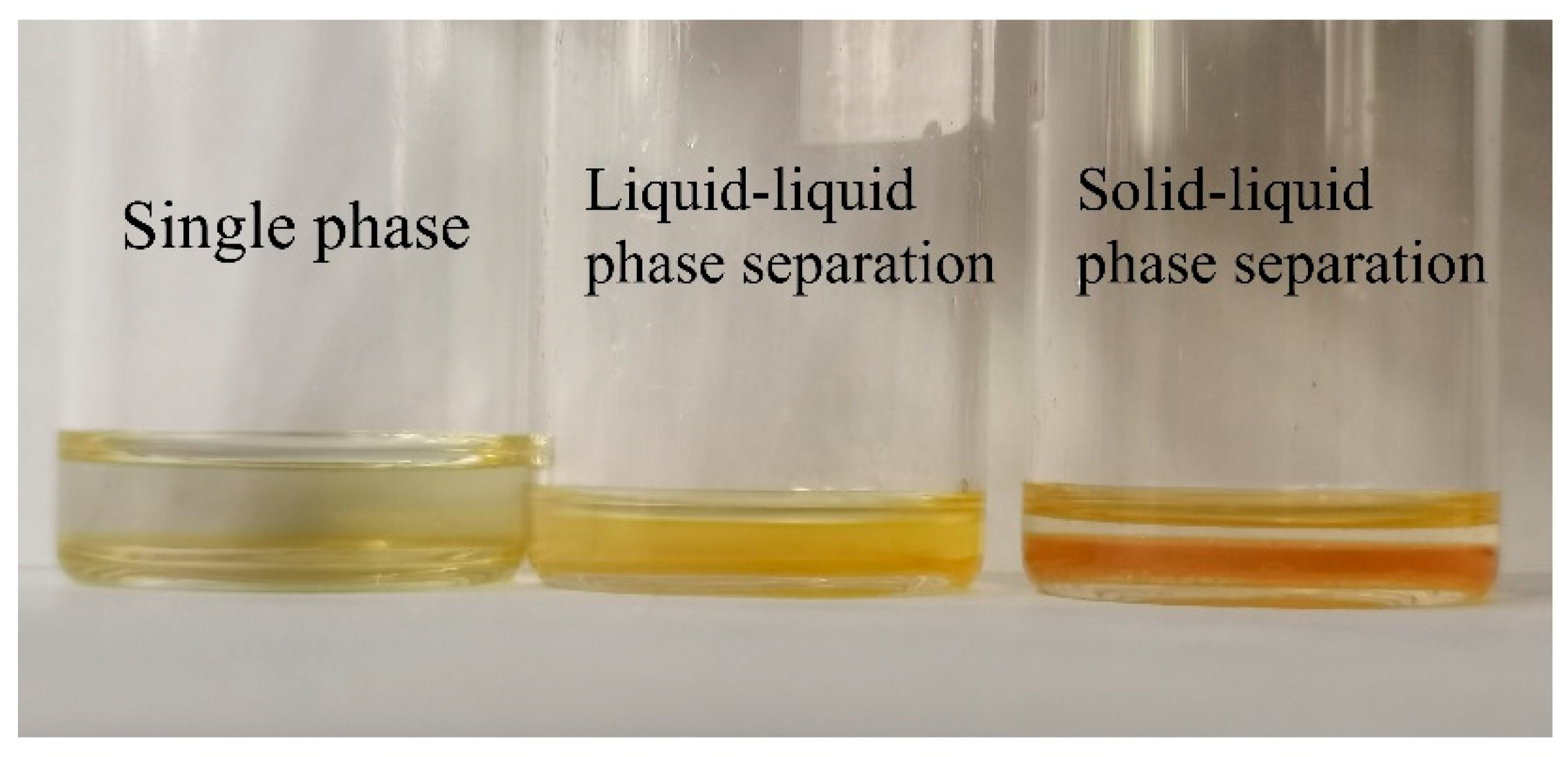 3.5. Construction of “PLAA/CHCl3/C6H14” Ternary Phase Diagram