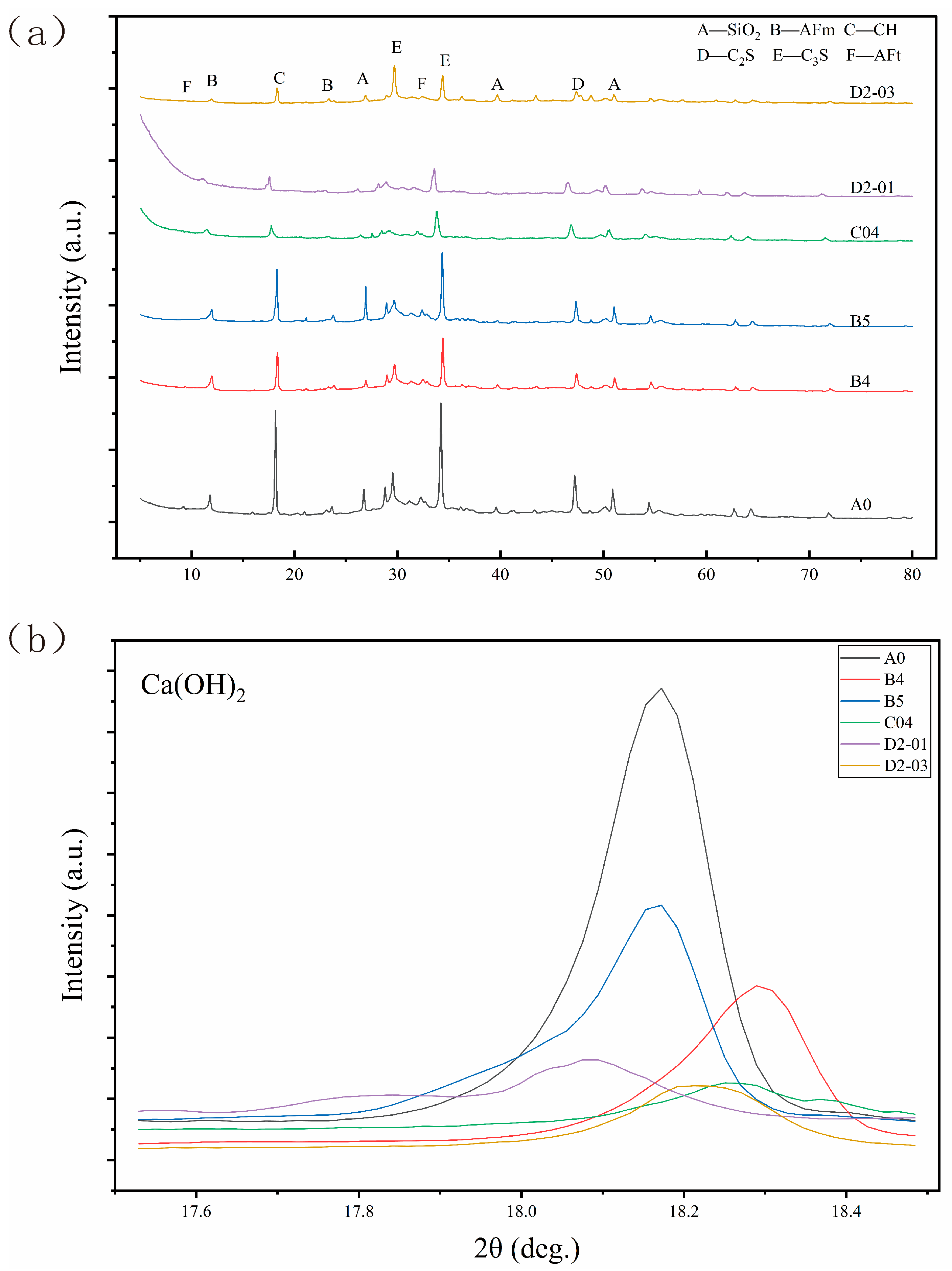 3.3. Analysis of Hydration Products and Solidification Mechanisms in Grouting Materials