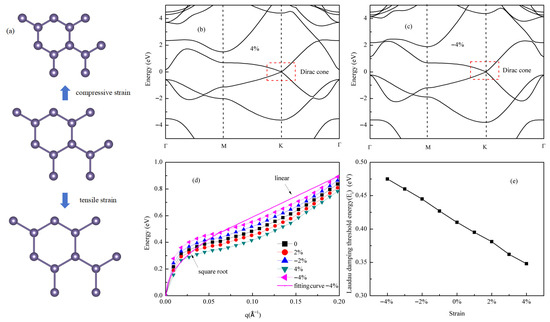 - Pereira, V.M.; Castro Neto, A.H. Strain engineering of graphene’s electronic structure. Phys. Rev. Lett. 2009, 103, 046801. [Google Scholar] [CrossRef] [PubMed]