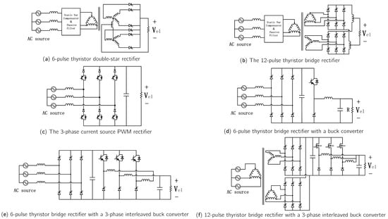 - Solanki, J.; Fröhleke, N.; Böcker, J.; Averberg, A.; Wallmeier, P. High-current variable-voltage rectifiers: State of the art topologies. Power Electron. Iet 2015, 8, 1068–1080. [Google Scholar] [CrossRef]