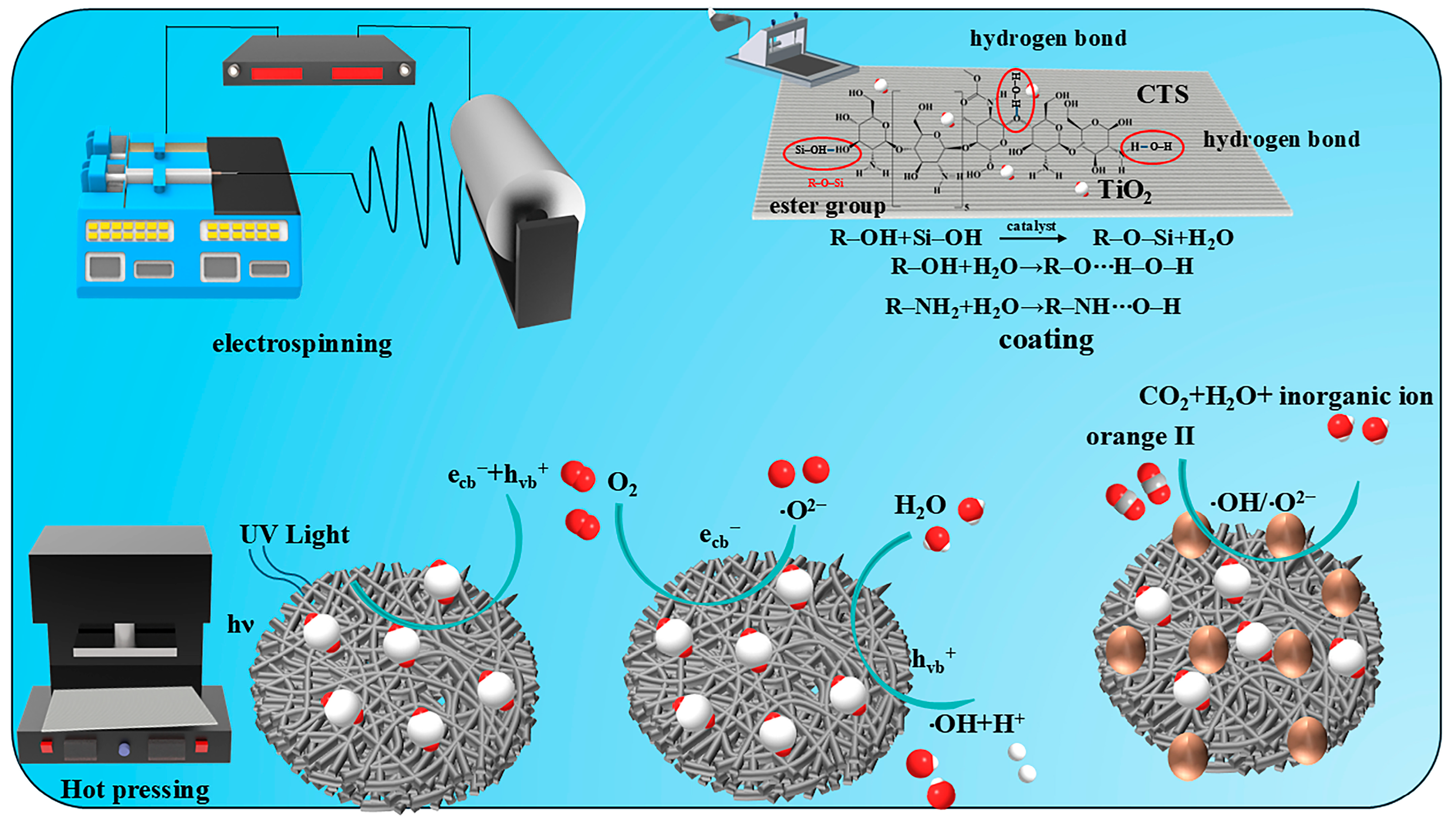 Wang J, Liu Z, Zhang J, Liu Y, Hou C, Cheng H, Wang Y, Liu X. Hot-Pressed Reinforced Photocatalyzed TiO2/Chitosan/SiO2 Nanofibers. Materials. 2025; 18(21):4828. https://doi.org/10.3390/ma18214828