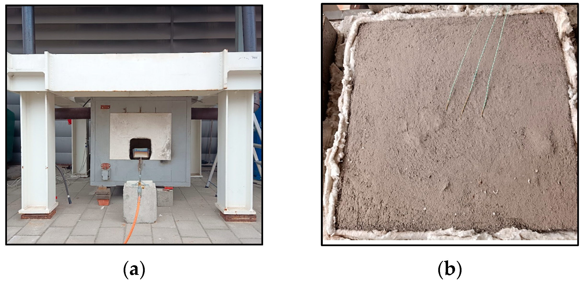 - ISO 834-1:1999; Fire-Resistance Tests—Elements of Building Construction—Part 1: General Requirements. International Organization for Standardization: Geneva, Switzerland, 1999.