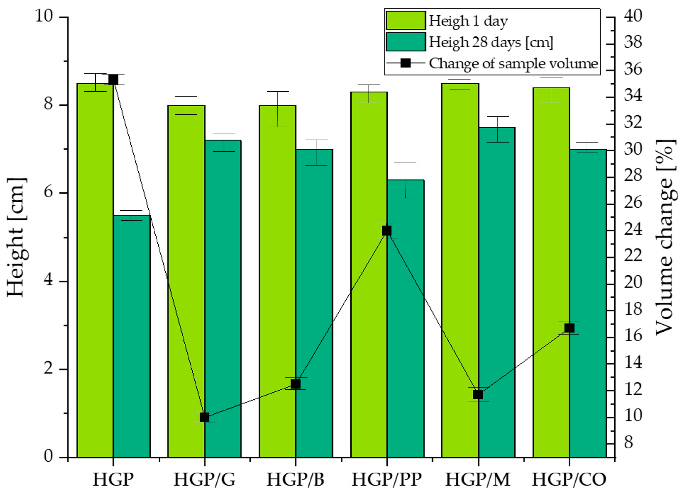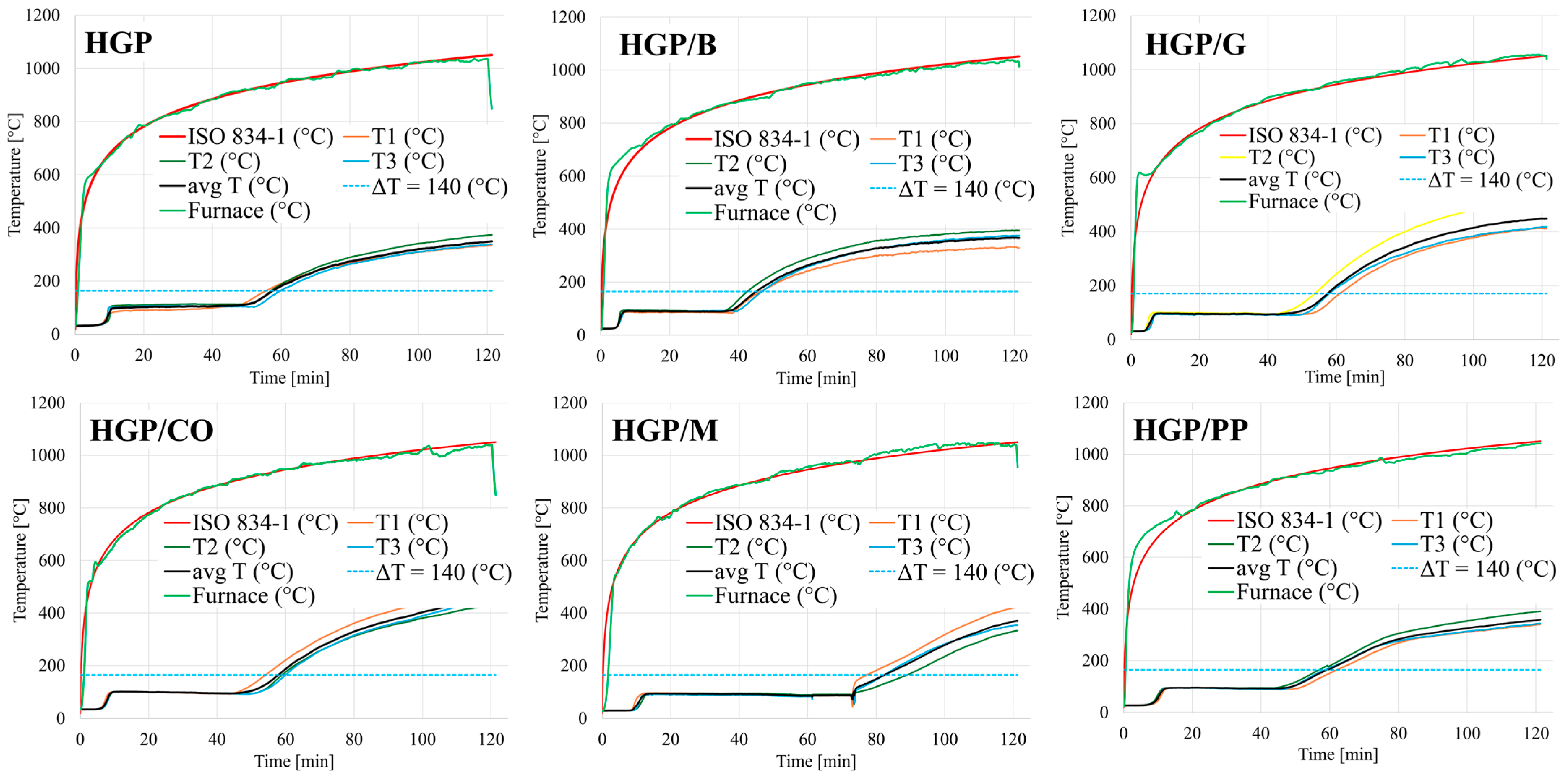 Temperature [°C] | HGP | HGP/G | HGP/B | HGP/PP | HGP/M | HGP/CO |