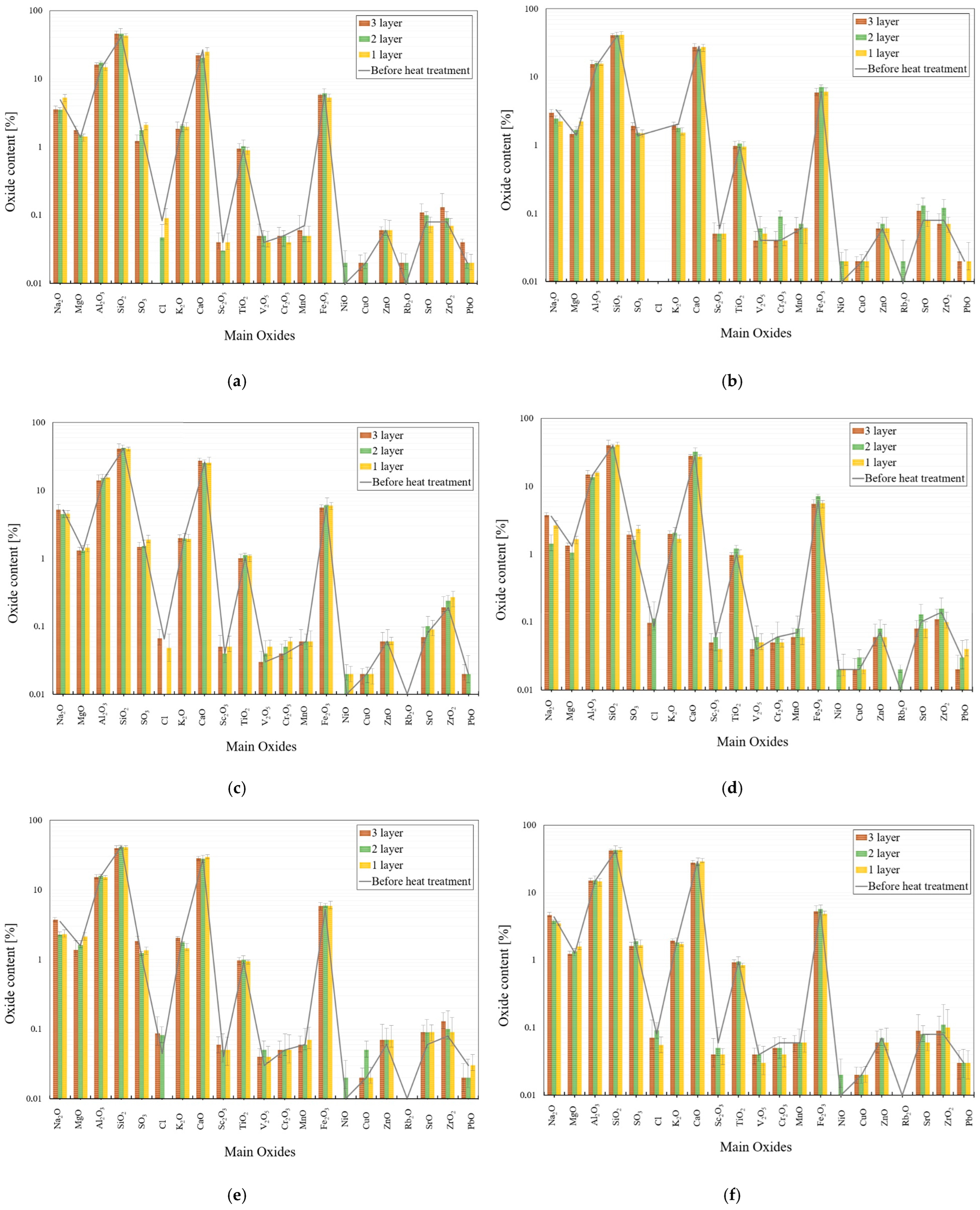 3.4. XRF Analysis of Distinct Layer Compositions