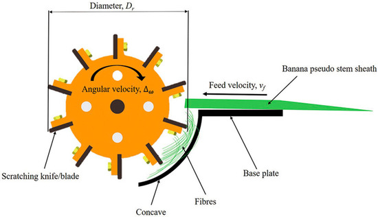 - Shrivastava, P.; Nageshkumar, T.; Jagadale, M.; Shambhu, V.B.; Nayak, L.K. Design and Simulation of Banana Pseudo-stem Fibre Extracting Raspador (Cylinder) Using FEA Technique. J. Nat. Fibers 2023, 20, 2200986. [Google Scholar] [CrossRef]