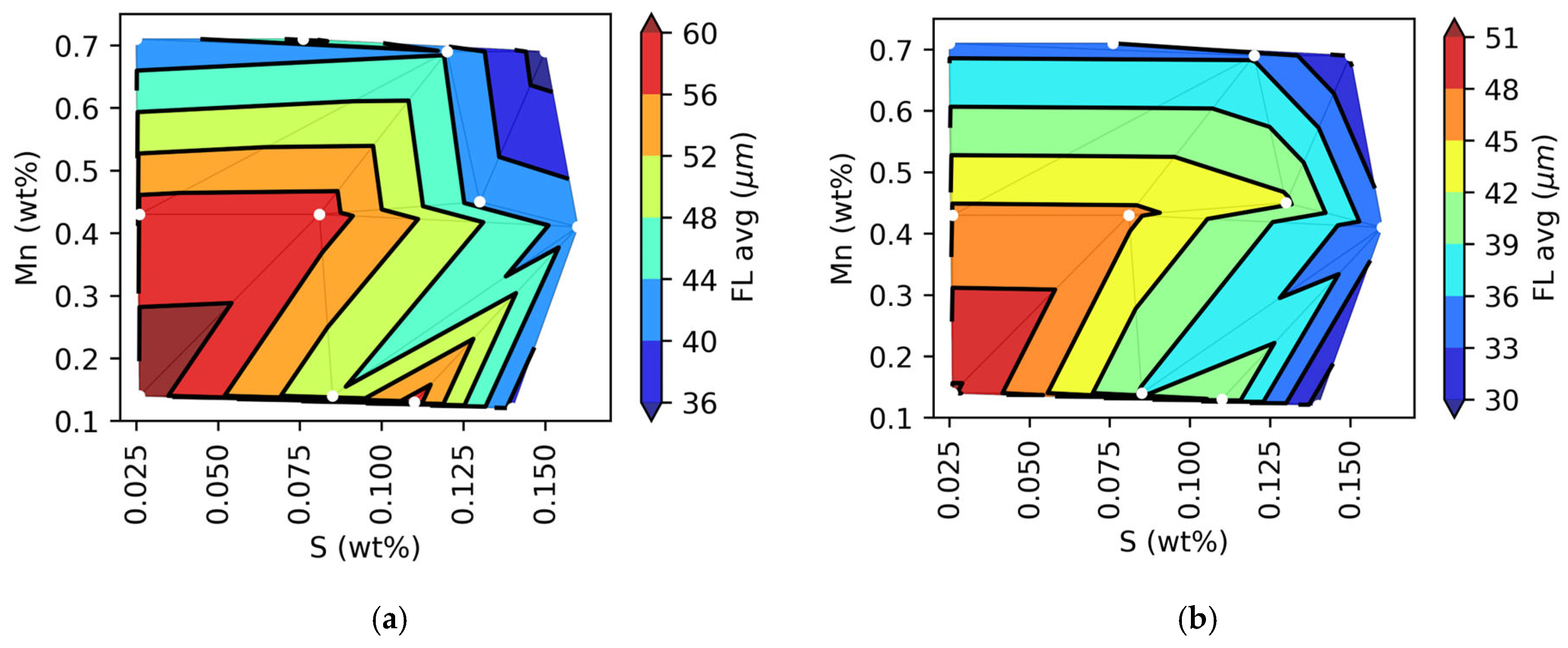 3.7. Summary of Main Effects of S and Mn on Branching, Flake’s Length, and Cell Count