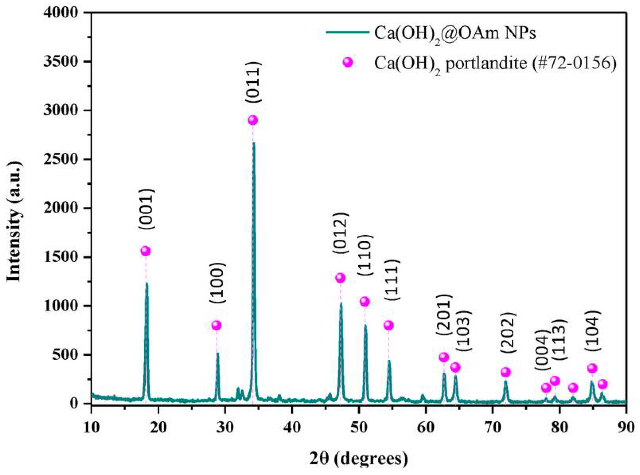 - Samanta, A.; Chanda, D.K.; Das, P.S.; Ghosh, J.; Mukhopadhyay, A.K.; Dey, A. Synthesis of Nano Calcium Hydroxide in Aqueous Medium. J. Am. Ceram. Soc. 2016, 99, 787–795. [Google Scholar] [CrossRef]