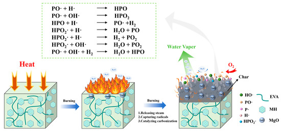 Flame-retardant mechanism diagram of MHP-3 in the combustion process.