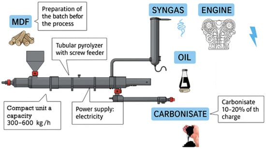 Schematic representation of the medium-density fibreboard (MDF) pyrolysis process.