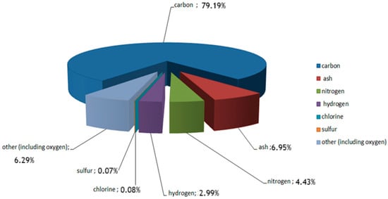 Carbonisate obtained from furniture waste (including MDF boards) has been previously characterised in terms of chemical composition and morphology [19,21]. The chemical composition is shown in Figure 2.